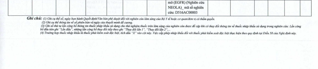Thông tin các thuốc nhập khẩu sử dụng cho thử nghiệm thuốc trên lâm sàng (Mã số: D516AC00003)
