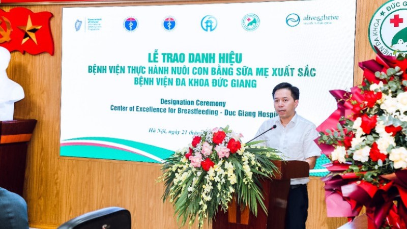 Phó Giáo sư, Tiến sĩ Đỗ Đình Tùng, Giám đốc Bệnh viện đa khoa Đức Giang bày tỏ niềm vinh dự và tự hào khi được Bộ Y tế công nhận là “Bệnh viện thực hành nuôi con bằng sữa mẹ xuất sắc”. Đây là một danh hiệu không chỉ là niềm vui mà còn là sự ghi nhận cho những nỗ lực bền bỉ, tâm huyết và tình yêu thương dành cho người mẹ và trẻ sơ sinh trong suốt thời gian qua.