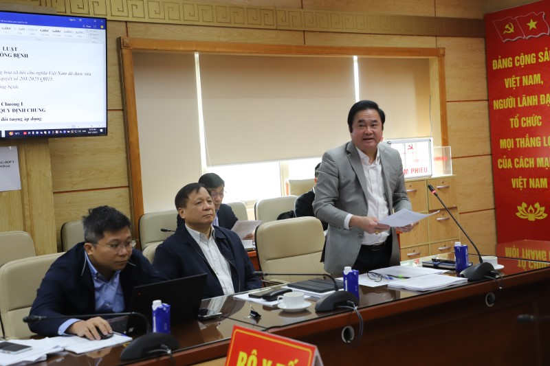 TS Hoàng Minh Đức, Cục trưởng Cục Phòng bệnh báo cáo trước Thứ trưởng Bộ Y tế Nguyễn Thị Liên Hương và các đại biểu về nội dung tiếp thu, giải trình, chỉnh lý đối với Dự án Luật Phòng bệnh và dự thảo Luật Phòng bệnh. Qua tổng hợp có khoảng 394 ý kiến, kết luận của Ủy ban Thường vụ Quốc hội, ý kiến thẩm tra, ý kiến của đại biểu Quốc hội tại tổ, tại hội trường và các đoàn đại biểu Quốc hội. Trong đó, đã tiếp thu 316 ý kiến, giải trình 78 ý kiến. Trên cơ sở đó, Bộ Y tế đã chỉnh lý 41/41 Điều của Dự thảo Luật, thống nhất dự thảo Luật đến 20/11/2025 gồm 6 Chương, 45 Điều, tăng 4 Điều, bao gồm: Bổ sung 2 Điều thành 4 Điều (Điều 34,35,36 và 37) tại Chương IV Dinh dưỡng trong phòng bệnh để đảm bảo dinh dưỡng trong vòng đời; gộp 2 Điều về nội dung Quản lý nhà nước về phòng bệnh và Trách nhiệm quản lý nhà nước về phòng bệnh thành 1 Điều về quản lý nhà nước về phòng bệnh (Điều 5); tách 1 Điều (Điều 24) về bảo đảm an toàn, an ninh sinh học trong xét nghiệm thành 2 Điều về bảo đảm an toàn trong xét nghiệm (Điều 24) và bảo đảm an ninh sinh học trong xét nghiệm (Điều 25).