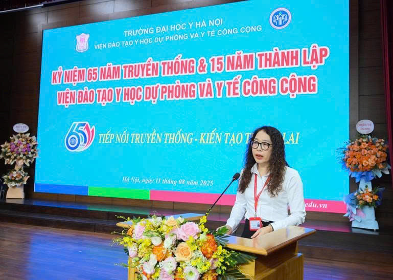 Phát biểu tại buổi lễ, PGS.TS Kim Bảo Giang, Phó Hiệu trưởng Trường Đại học Y Hà Nội chia sẻ: Viện có tiền thân là Bộ môn Vệ sinh Dịch tễ, được thành lập cách đây 65 năm. Kế thừa truyền thống đó, Viện luôn là một trong những trung tâm hàng đầu cả nước về đào tạo nhân lực y tế dự phòng và y tế công cộng; đồng thời tiên phong trong nhiều hoạt động nghiên cứu khoa học, đóng góp quan trọng cho việc hoạch định chính sách y tế quốc gia.