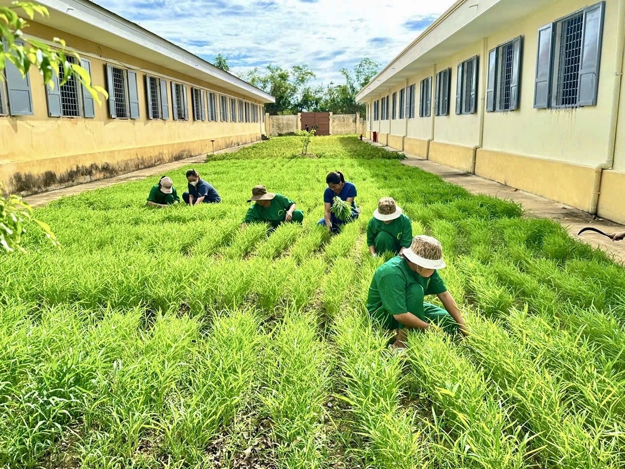 Trung tâm NDNTT Bắc Quảng Trị hiện có 70 cán bộ, nhân viên chia nhau đảm nhận mọi công việc từ y tế, dinh dưỡng, phục hồi chức năng, đến quản lý sinh hoạt, vệ sinh... Mỗi người phải phụ trách hàng chục BN, nhưng họ vẫn luôn giữ thái độ nhẹ nhàng, kiên nhẫn, coi BN như người thân. Trung tâm duy trì khám sức khỏe định kỳ, theo dõi diễn biến bệnh hằng ngày, quản lý điều trị bằng thuốc theo đúng phác đồ. Bếp ăn chuẩn bị các khẩu phần phù hợp từng nhóm bệnh, bảo đảm dinh dưỡng và an toàn vệ sinh thực phẩm; khu nhà ở được vệ sinh thường xuyên, bố trí thoáng mát, sạch sẽ để người bệnh cảm thấy an toàn, dễ chịu. Song song với điều trị, trung tâm đặc biệt chú trọng công tác phục hồi chức năng và tái hòa nhập cộng đồng. Các lớp lao động trị liệu, dạy nghề, dạy văn hóa, hoạt động nhóm, tập thể dục buổi sáng, chăm sóc cây xanh... được duy trì đều đặn, giúp người bệnh giảm căng thẳng, cải thiện nhận thức, từng bước khôi phục kỹ năng tự phục vụ. Trung tâm cũng triển khai quản lý hồ sơ bệnh án đầy đủ; phân loại, sàng lọc BN theo mức độ bệnh; xây dựng kế hoạch chăm sóc riêng cho từng người. Nhờ cách làm bài bản ấy, nhiều BN tiến bộ rõ rệt.