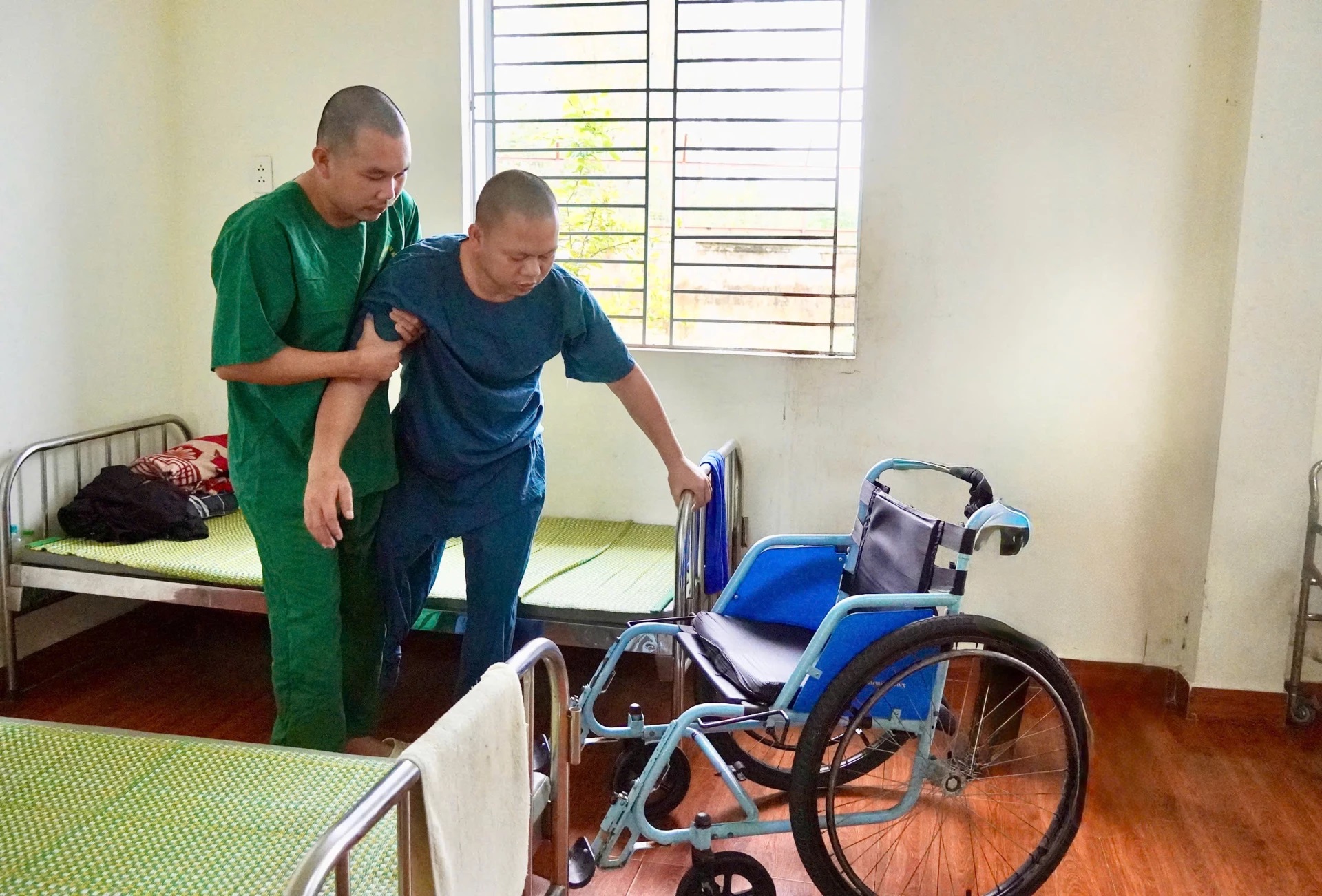Ngày đó, Nam thường lang thang khắp các ngả đường, la hét, rượt đuổi người qua lại. Căn bệnh tâm thần khiến anh trở nên hung hãn, mất kiểm soát. Năm 2020, anh được chính quyền địa phương đưa vào trung tâm. Những ngày đầu, anh chống đối dữ dội, không chịu ăn, không chịu uống thuốc, đập phá mọi thứ trong tầm tay. Nhưng ở nơi này, không ai xem đó là điều bất thường. Các y bác sĩ, nhân viên vẫn kiên nhẫn, nhẹ nhàng từng chút một. Thời gian trôi, những liều thuốc đều đặn, những buổi tập phục hồi, những lời động viên kiên nhẫn đã giúp anh thay đổi từng ngày. Bây giờ, anh được giao phụ trách hỗ trợ BN nặng hơn, đẩy xe, dọn phòng, quét sân...