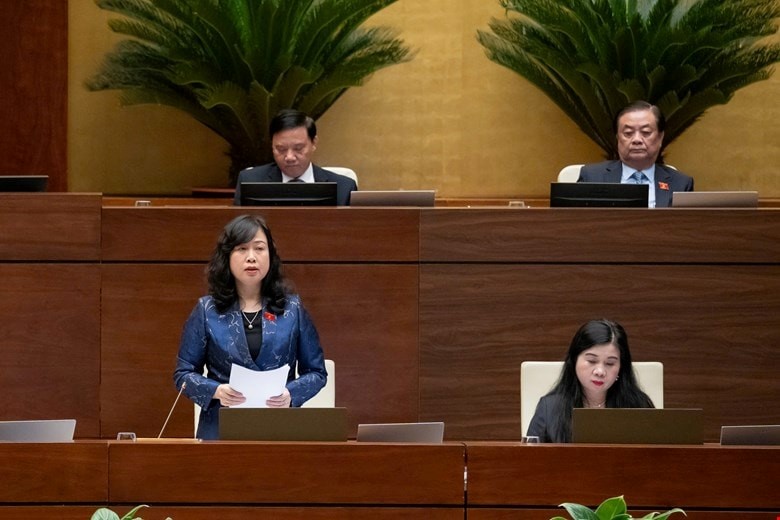 Bộ trưởng Bộ Y tế Đào Hồng Lan phát biểu tiếp thu, giải trình ý kiến đại biểu Quốc hội. Ảnh: Quochoi.vn