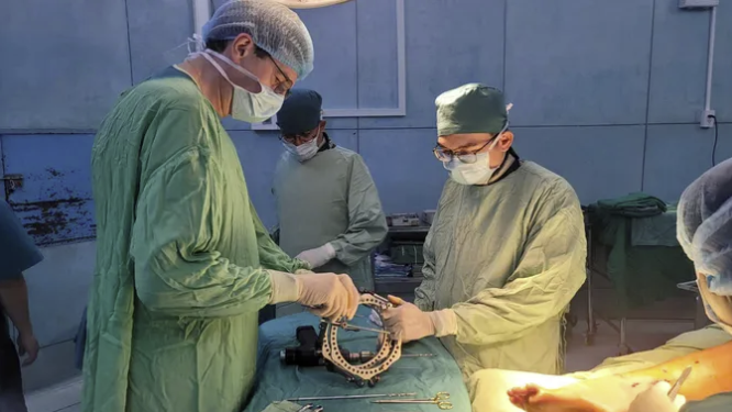 Ê-kíp phẫu thuật thực hiện cắt xương, lắp khung kéo dài xương cho bệnh nhi
