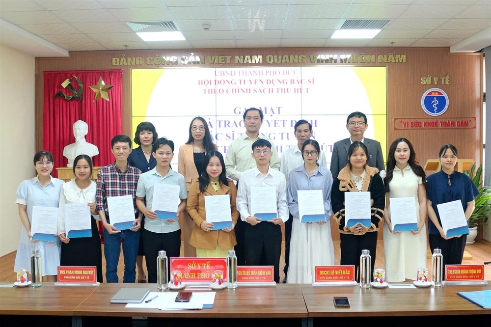 Sở Y tế thành phố Huế gặp mặt và trao quyết định trúng tuyển viên chức sự nghiệp y tế kỳ tuyển dụng bác sĩ theo chính sách thu hút đợt 1 năm 2025