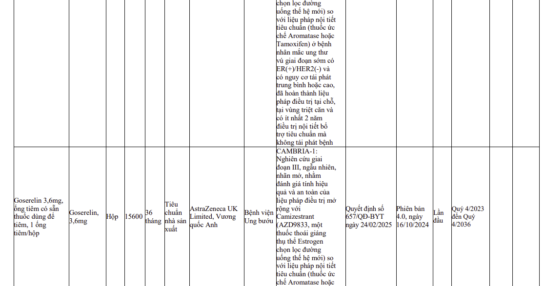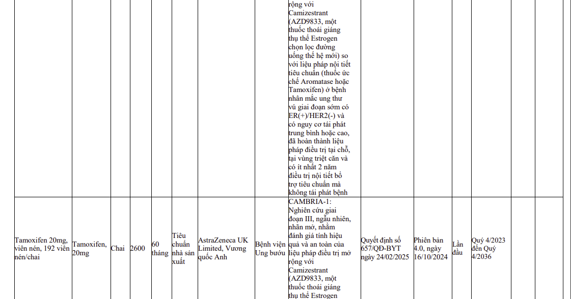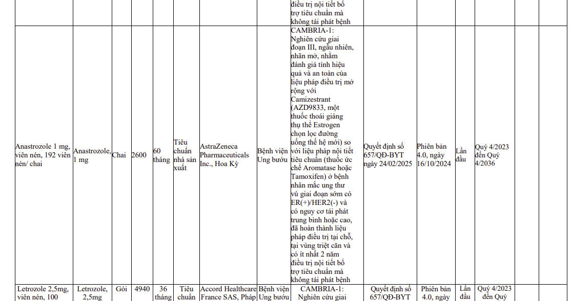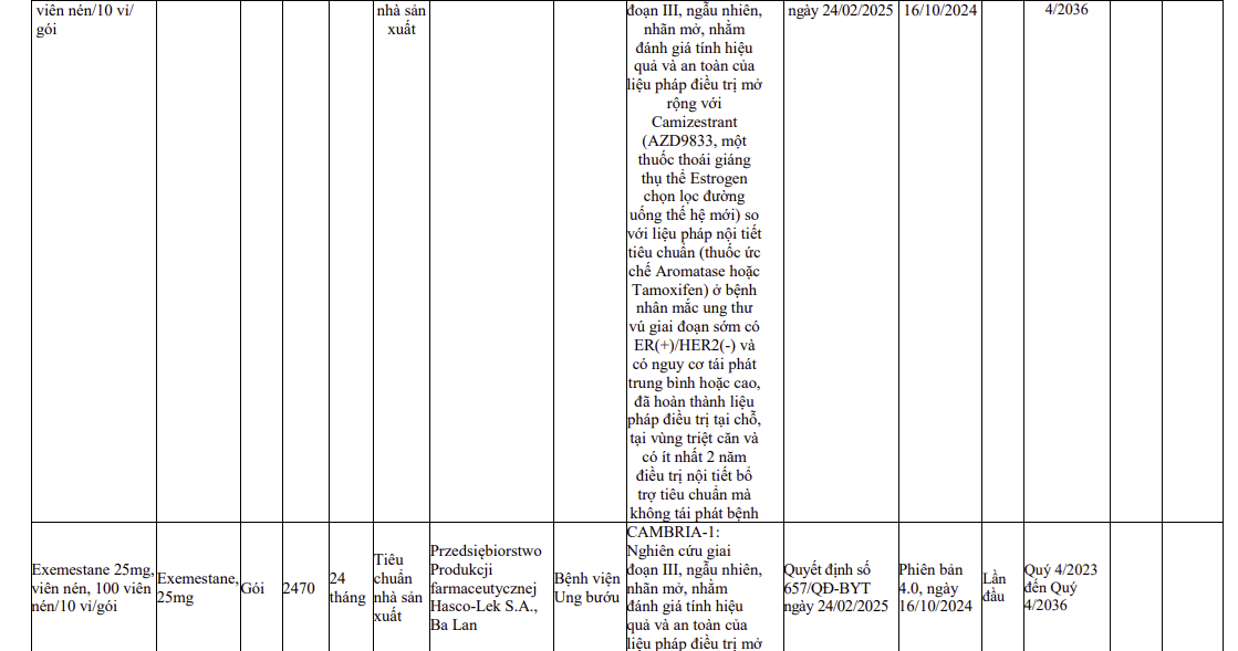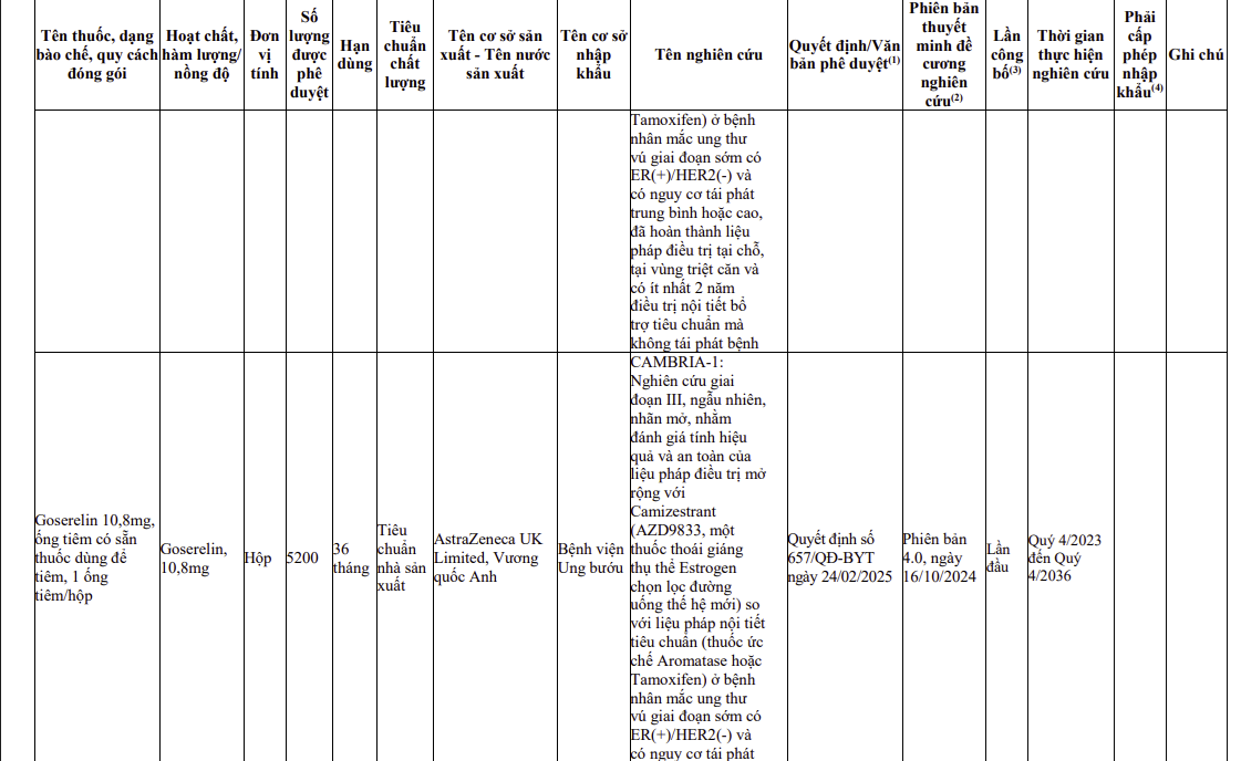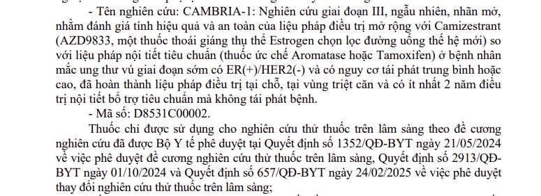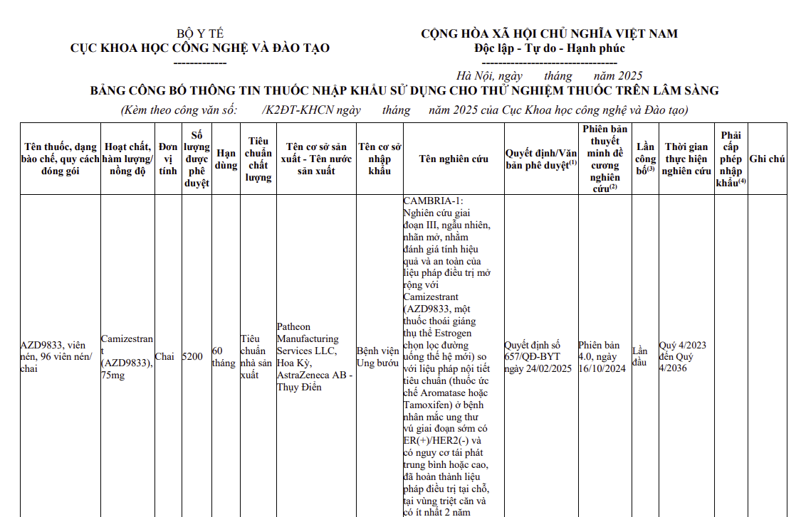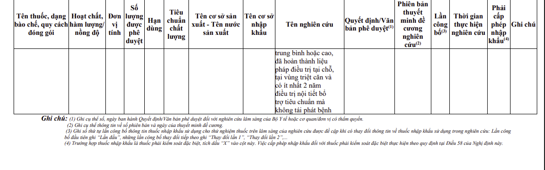 Thông tin các thuốc nhập khẩu sử dụng cho thử nghiệm thuốc trên lâm sàng (Mã số: D8531C00002)