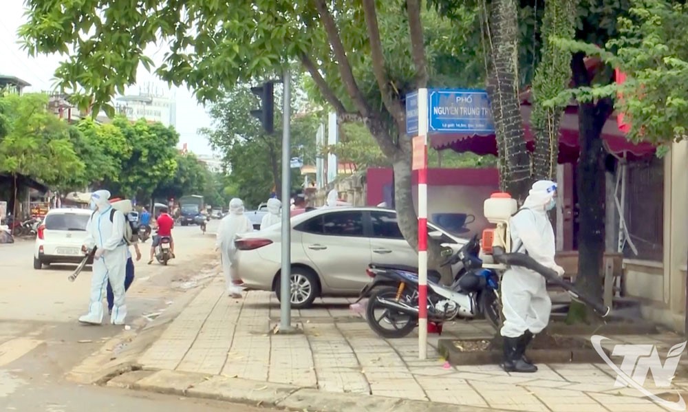 Phun khử khuẩn sau lũ tại phường Phan Đình Phùng. |