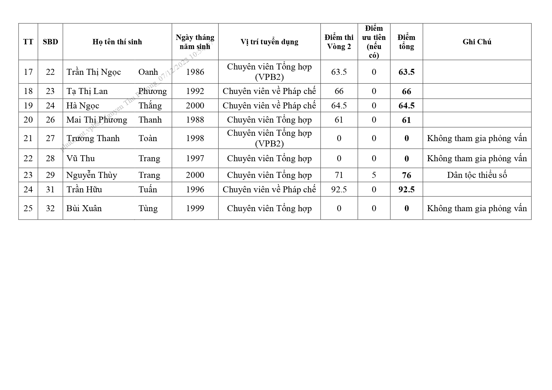 Thông báo Kết quả thi tuyển vòng 2 kỳ thi tuyển dụng công chức của Văn phòng Bộ năm 2022