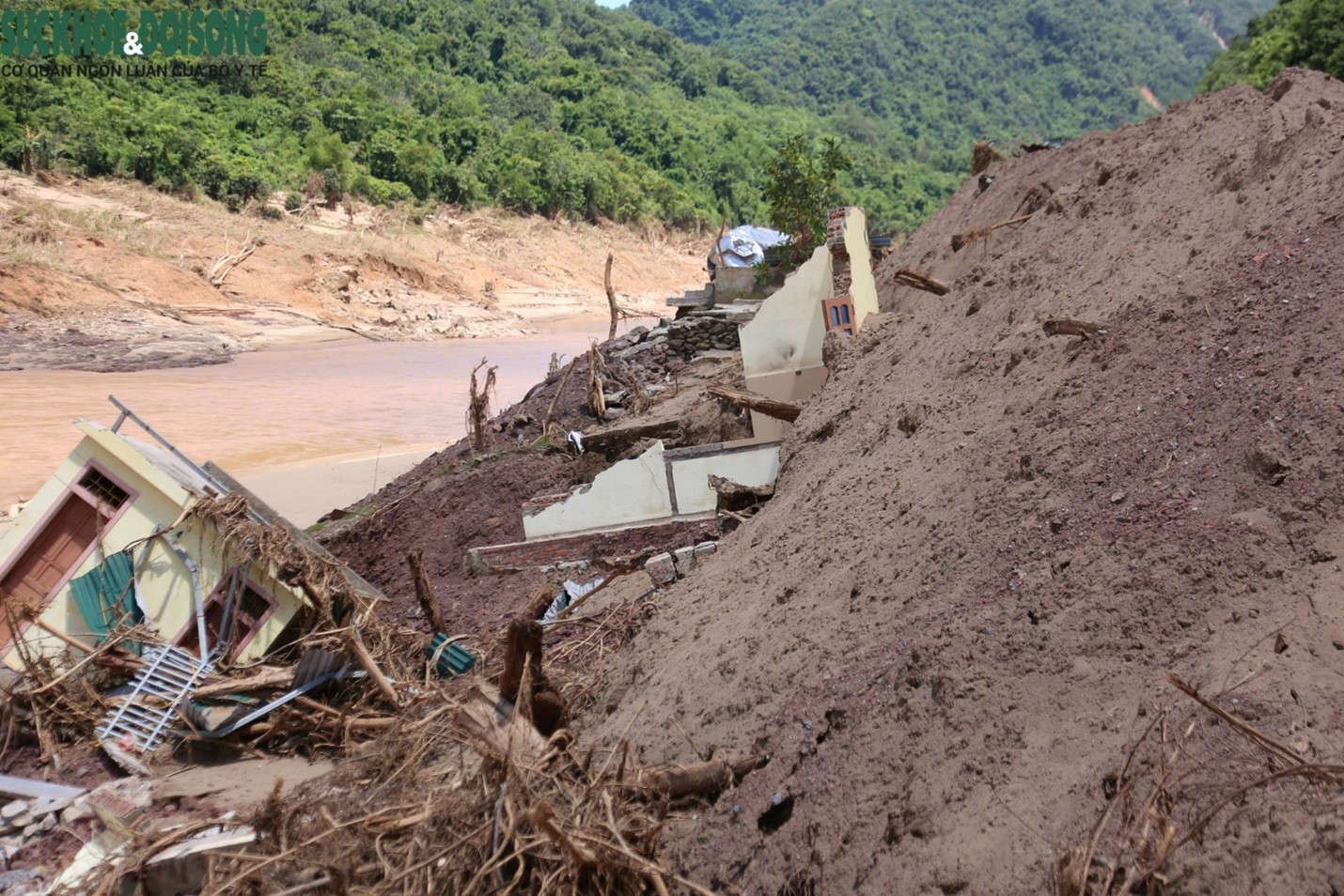 Trạm y tế xã Mỹ Lý bị cuốn trôi sau trận lũ.