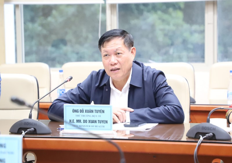 Thứ trưởng Bộ Y tế Đỗ Xuân Tuyên phát biểu chào đón đại diện Tập đoàn Golding Brothers Partners làm việc tại Bộ Y tế