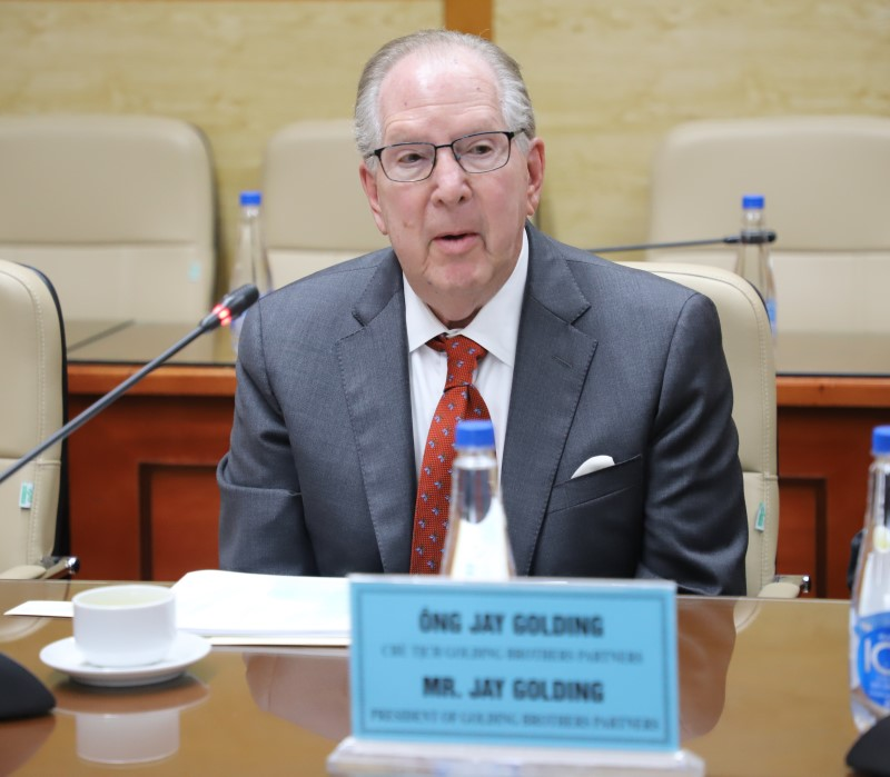 Phát biểu tại buổi làm việc, ông Jay Golding, Chủ tịch Ban số 8 Y tế, Chủ tịch Golding Brothers Partners bày tỏ vui mừng trước những bước phát triển tích cực của quan hệ đối tác toàn diện Việt Nam – Hoa Kỳ nói chung và lĩnh vực Y tế nói riêng. Ông Jay Golding giới thiệu tổng quát về Tập đoàn với mô hình hoạt động trong lĩnh vực thiết bị y tế & Công nghệ sinh học, bày tỏ mong muốn có thêm nhiều dự án hợp tác quan trọng trong lĩnh vực y tế, góp phần vào công tác chăm sóc và bảo vệ sức khỏe nhân dân Việt Nam. Về mặt công nghệ, doanh nghiệp đang sở hữu độc quyền công nghệ CeraShield™, dựa trên hoạt chất Ceragenins, chính là các phân tử nhỏ được thiết kế để mô phỏng hệ thống miễn dịch tự nhiên của cơ thể, khác với kháng sinh truyền thống, đặc biệt, có khả năng phá vỡ màng tế bào và tiêu trừ sự phát triển của vi khuẩn, nấm. Tập đoàn đề xuất với Lãnh đạo Bộ Y tế về việc triển khai thử nghiệm lâm sàng sử dụng thiết bị đặt nội khí quản có tráng lớp hoạt chất Ceragenins, nhằm ngăn ngừa, giảm bớt sự phát triển vi khuẩn gây hại sau phẫu thuật đối với bệnh nhân.