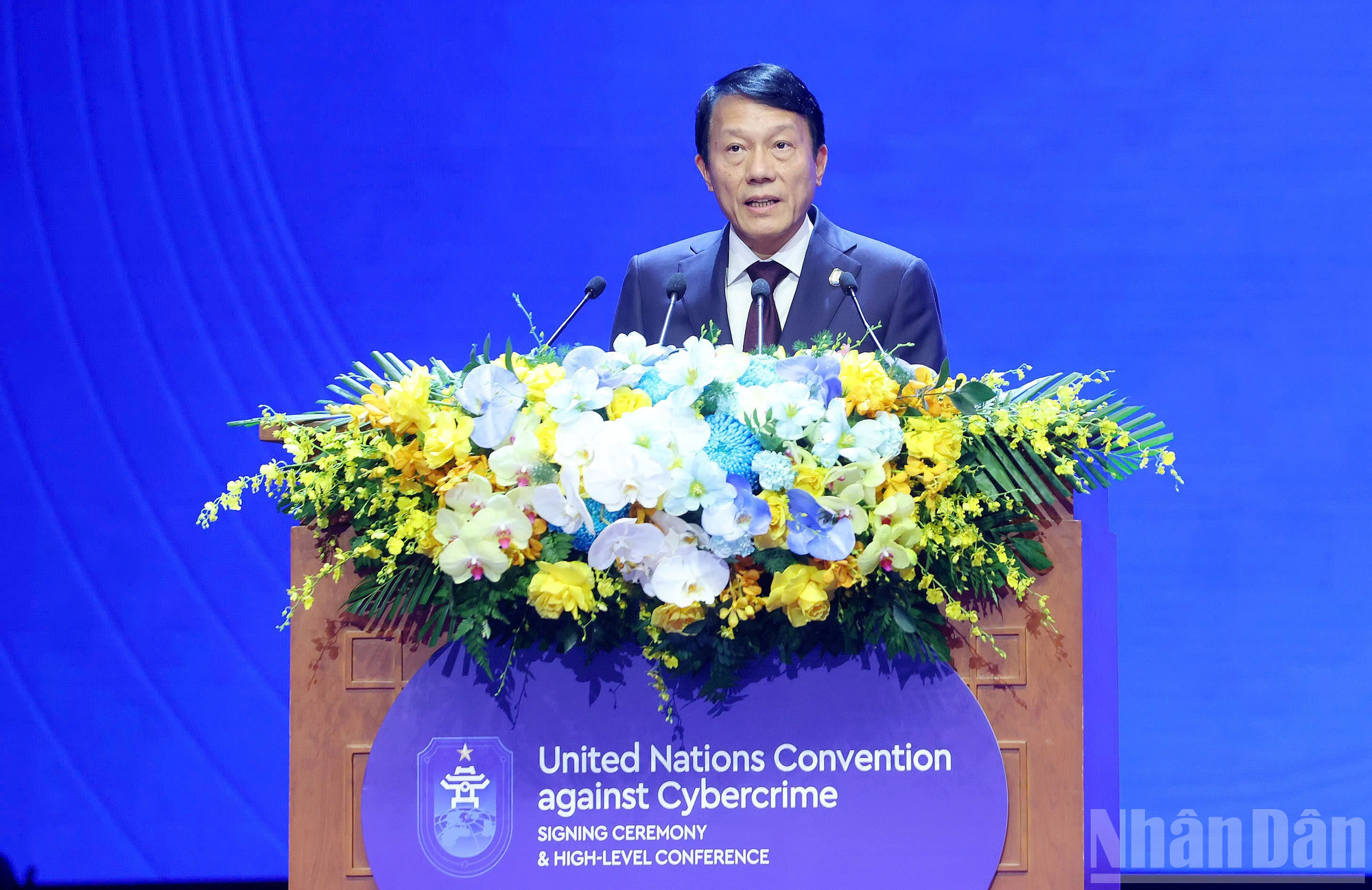 “Việt Nam tin tưởng sâu sắc rằng Lễ mở ký Công ước của Liên hợp quốc về chống tội phạm mạng sẽ là cột mốc lịch sử, mở ra kỷ nguyên hợp tác mới trong nỗ lực bảo vệ hòa bình, ổn định và phát triển bền vững của nhân loại”, Bộ trưởng khẳng định, đồng thời bày tỏ Công ước Hà Nội sẽ thực sự trở thành “ngọn hải đăng” soi đường cho hợp tác toàn cầu về an ninh mạng, đưa thế giới đến mục tiêu công nghệ vì con người, số hóa vì hòa bình.