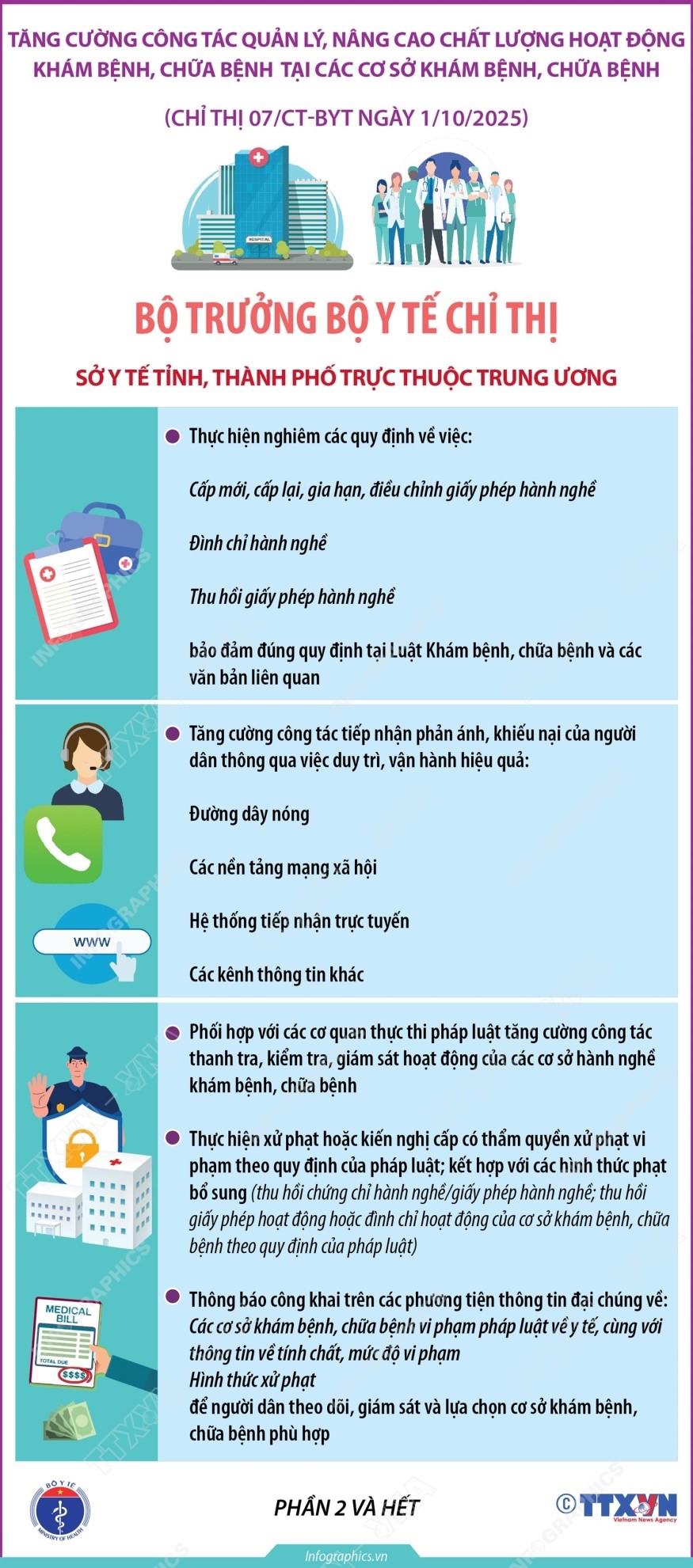 Có thể thấy, Chỉ thị 07/CT-BYT là một bước tiến quan trọng trong nỗ lực nâng cao toàn diện chất lượng dịch vụ y tế quốc gia. Việc triển khai nghiêm túc và đồng bộ các nội dung của Chỉ thị sẽ góp phần xây dựng một hệ thống khám bệnh, chữa bệnh chuyên nghiệp, an toàn, và đáp ứng tốt hơn nữa nhu cầu chăm sóc sức khỏe ngày càng cao của người dân.