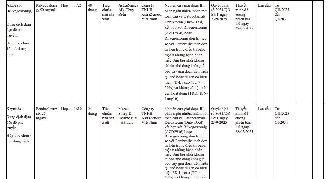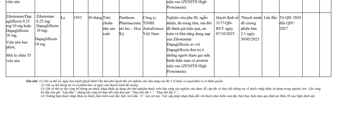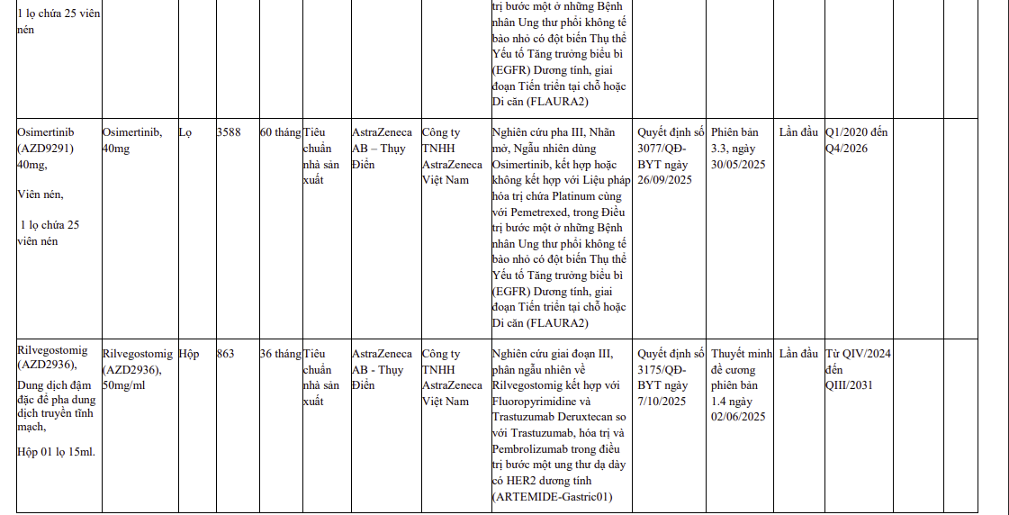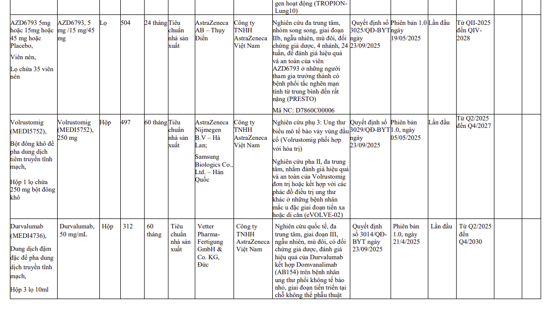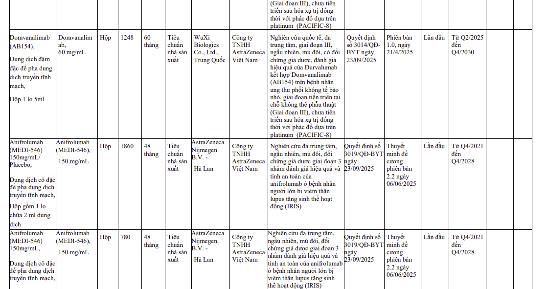 Thông tin các thuốc nhập khẩu sử dụng cho thử nghiệm thuốc trên lâm sàng (2825)