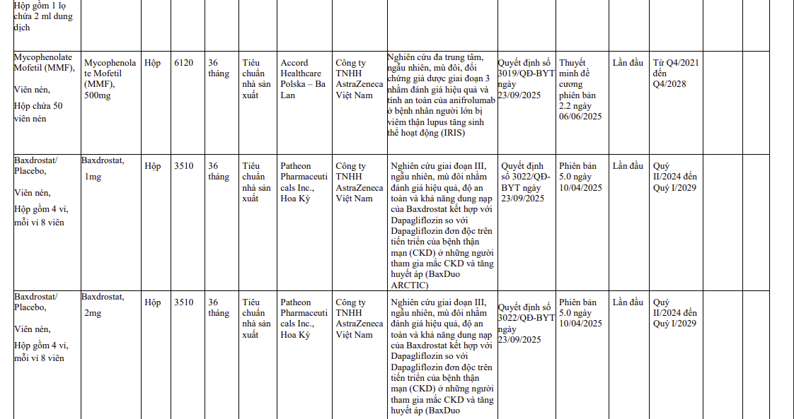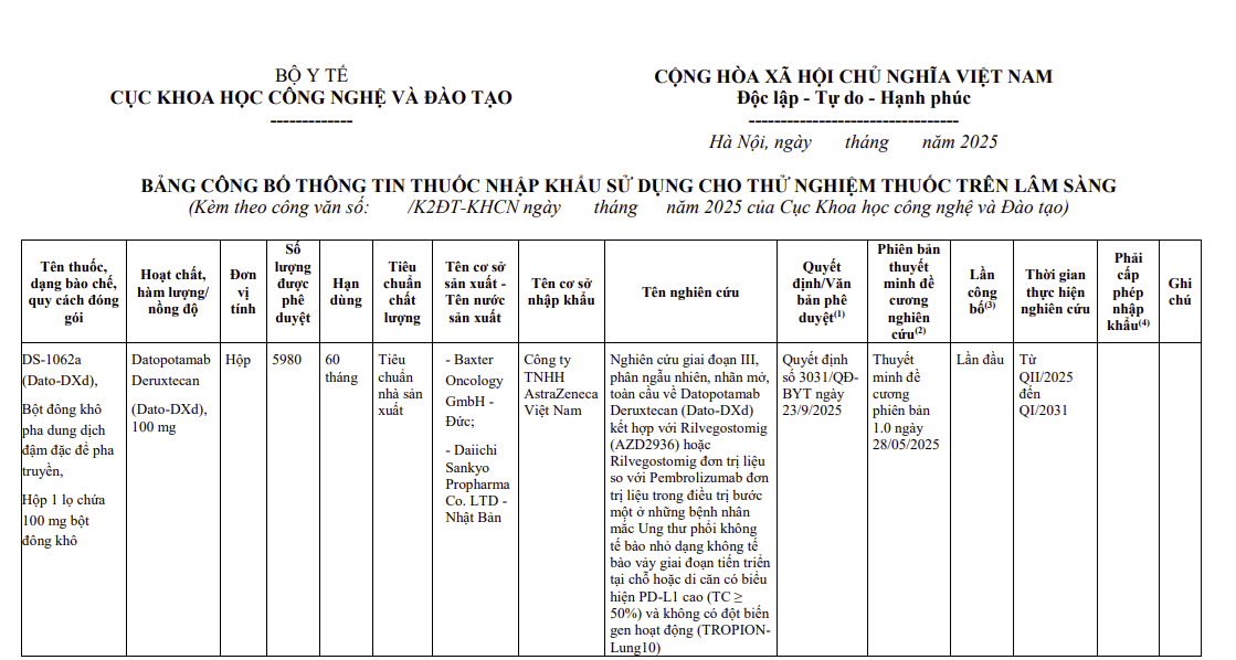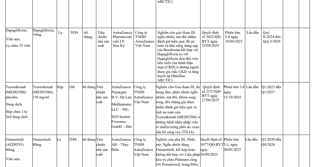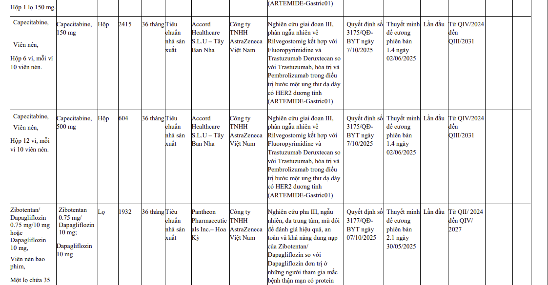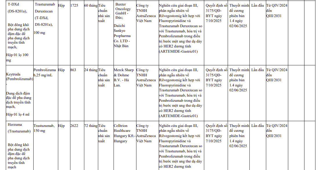 Thông tin các thuốc nhập khẩu sử dụng cho thử nghiệm thuốc trên lâm sàng (2825)