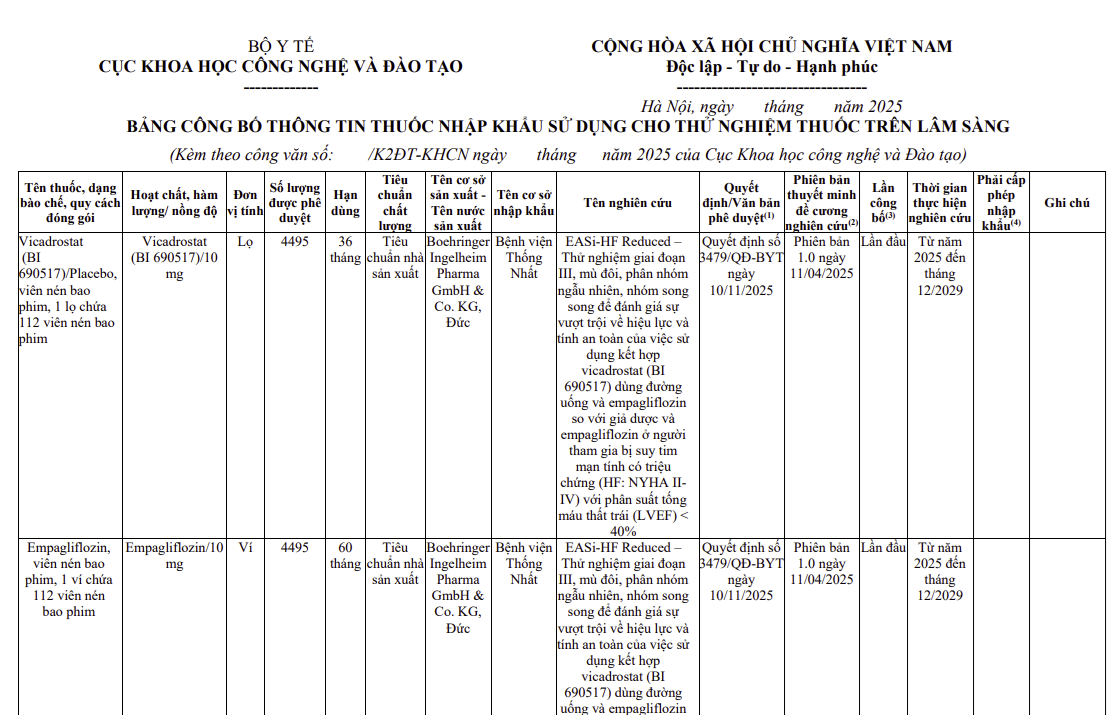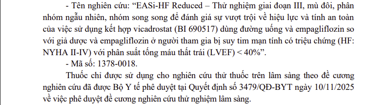 Thông tin các thuốc nhập khẩu sử dụng cho thử nghiệm thuốc trên lâm sàng (Mã số: 1378-0018)