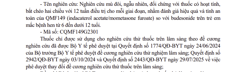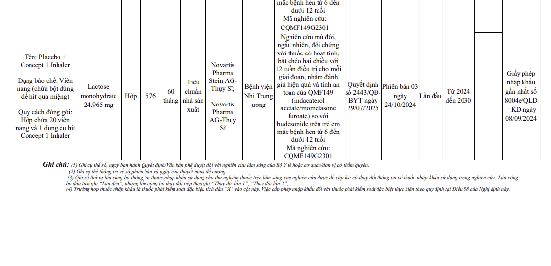 Thông tin các thuốc nhập khẩu sử dụng cho thử nghiệm thuốc trên lâm sàng (Mã số: CQMF149G2301)