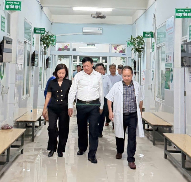 Phát biểu tại chương trình làm việc, Thứ trưởng Bộ Y tế Đỗ Xuân Tuyên ghi nhận và biểu dương tinh thần đoàn kết, trách nhiệm và sự tận tâm của đội ngũ cán bộ, bác sĩ, nhân viên y tế trong việc ứng phó, bảo vệ và chăm sóc người bệnh giữa hoàn cảnh thiên tai khắc nghiệt. Thứ trưởng Bộ Y tế chia sẻ sâu sắc với những khó khăn, thiệt hại mà bệnh viện phải gánh chịu trong đợt lụt vừa qua.