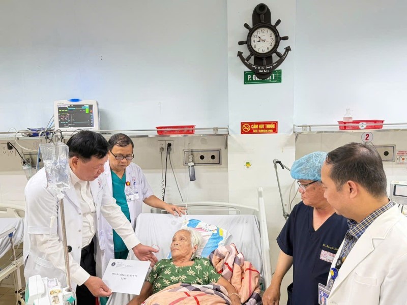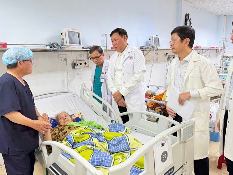 Thứ trưởng trực tiếp khảo sát thực tế tình hình cơ sở vật chất và công tác khắc phục sau lụt của bệnh viện, đồng thời đến thăm hỏi, động viên và tặng quà cho các bệnh nhân nặng đang điều trị tại Khoa Hồi sức tích cực – Chống độc.