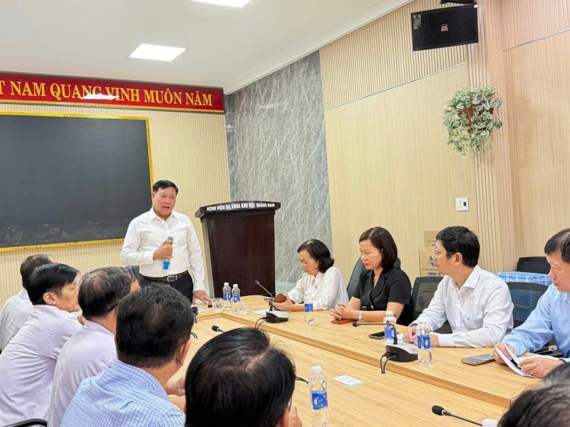 Bác sĩ Nguyễn Tải, Giám đốc Bệnh viện Đa khoa Khu vực Quảng Nam báo cáo với đoàn về tình hình ứng phó trước, trong và sau đợt lụt lịch sử. Đặc biệt Bệnh viện đã đảm bảo an toàn tuyệt đối cho bệnh nhân và người nhà đang nằm viện. Sau đợt lụt tập thể cán bộ, bác sĩ nhân viên y tế cùng hơn 250 chiến sĩ của Bộ chỉ huy quân sự TP Đà Nẵng trong công tác khắc phục hậu quả, vệ sinh, khử khuẩn và nhanh chóng khôi phục hoạt động khám chữa bệnh nhằm bảo đảm chăm sóc người bệnh an toàn.
