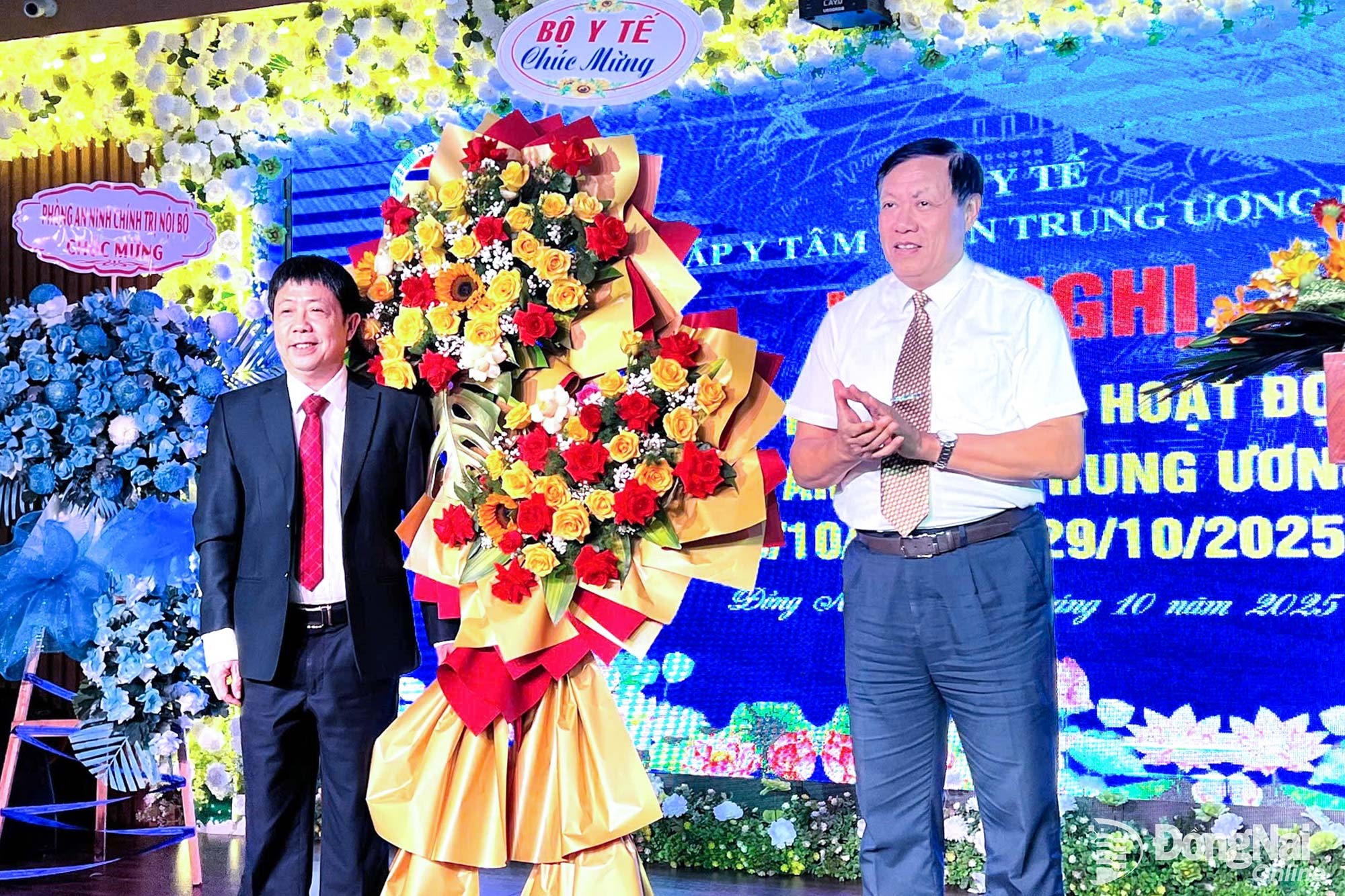 Thứ trưởng Bộ Y tế Đỗ Xuân Tuyên tặng hoa chúc mừng Viện Pháp y tâm thần Trung ương Biên Hòa.