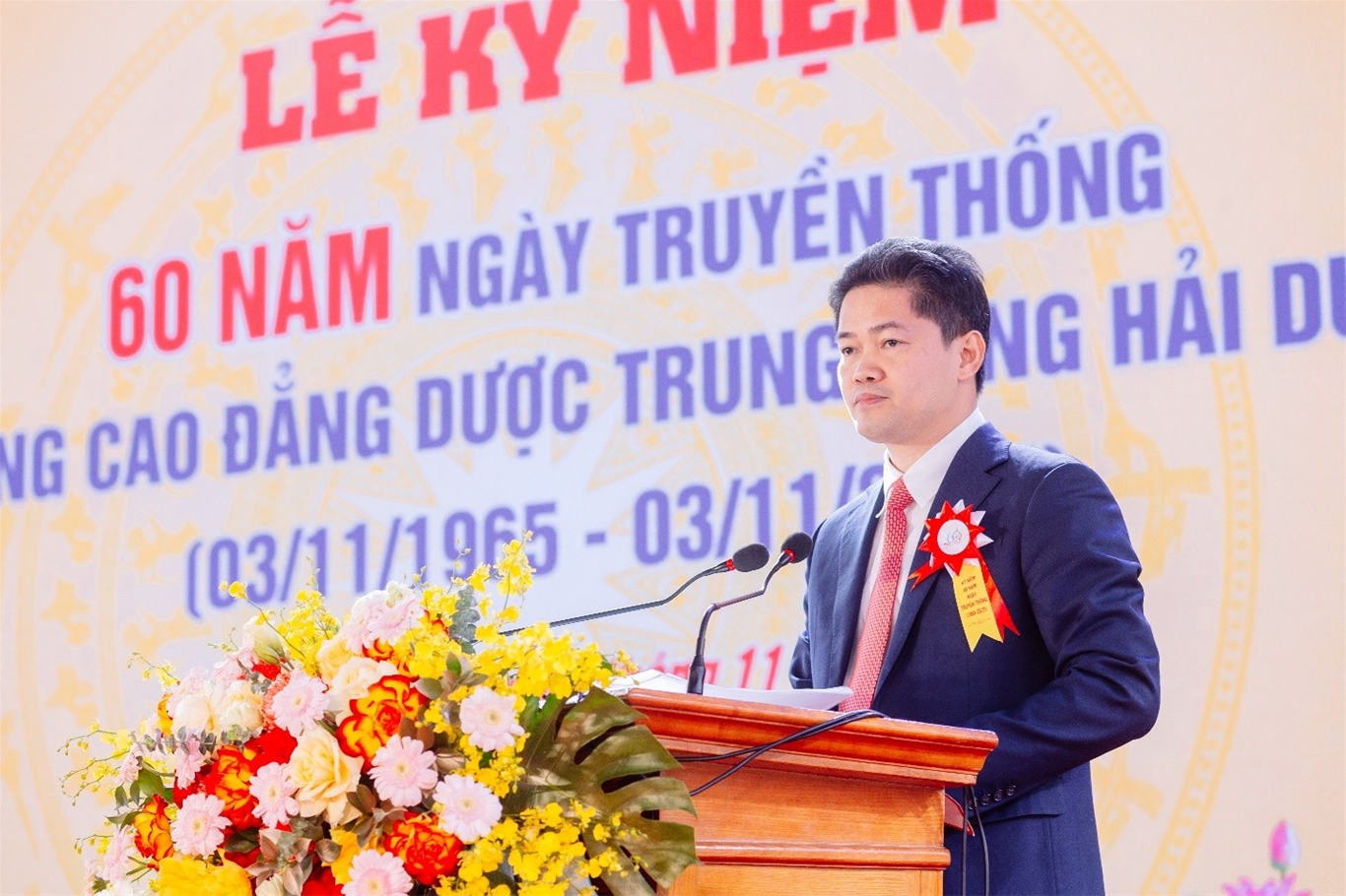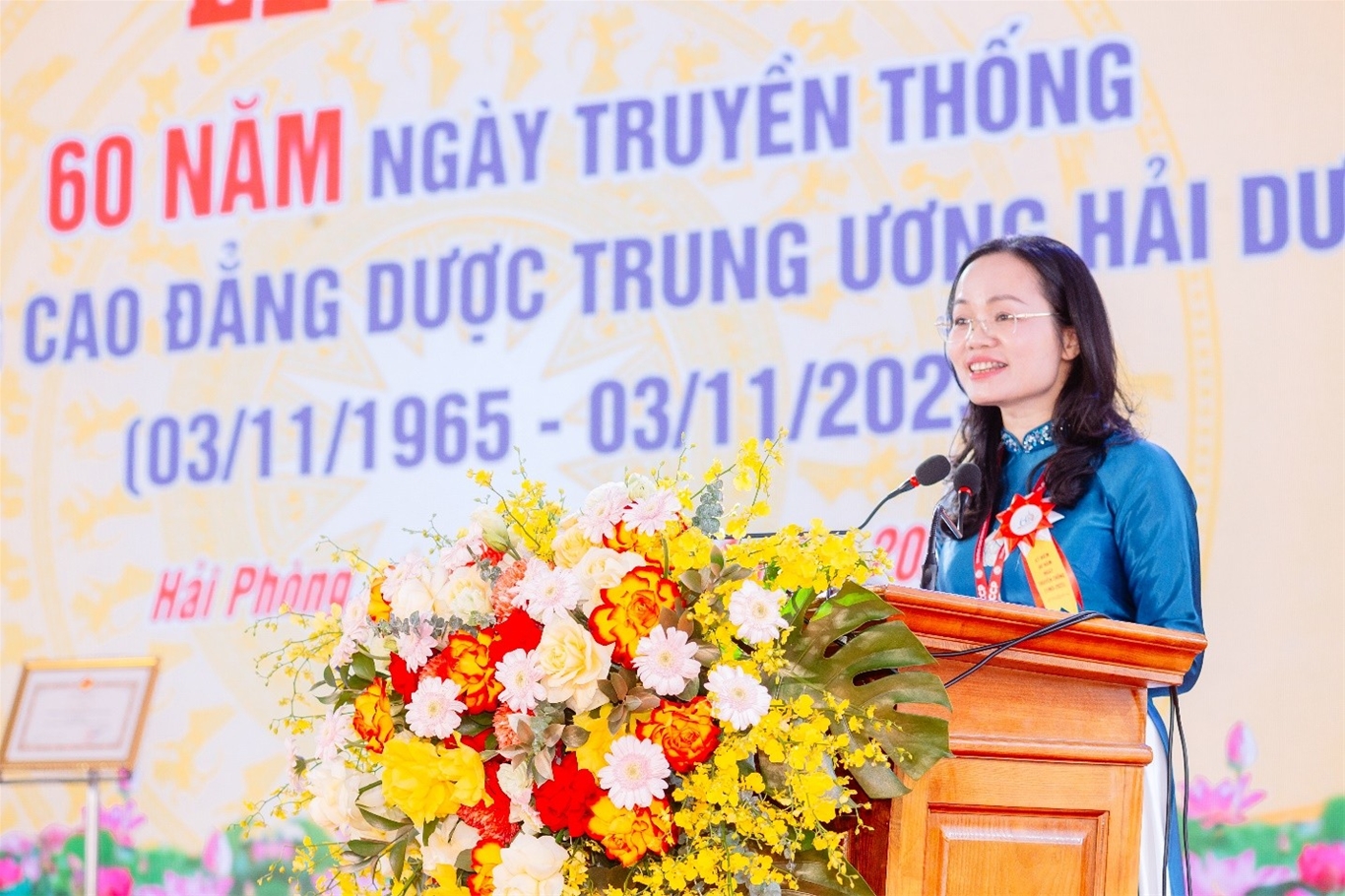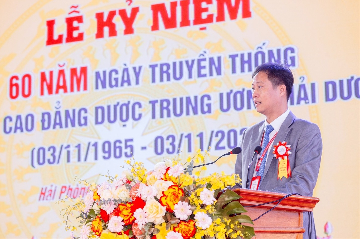 TS. Trần Bá Kiên, Hiệu trưởng nhà trường trình bày diễn văn ôn lại truyền thống vẻ vang, tri ân các thế hệ đi trước và khẳng định định hướng phát triển trong giai đoạn mới, gắn đào tạo với thực tiễn, hội nhập quốc tế và chuyển đổi số trong giáo dục nghề nghiệp lĩnh vực Dược. Sau 60 năm phát triển, trường Cao đẳng Dược Trung ương Hải Dương đã mở rộng sang nhiều lĩnh vực mới như kỹ thuật dược, quản lý huấn luyện sức khỏe, công nghệ thực phẩm - dược phẩm, dược cộng đồng, dược liệu, dược học cổ truyền, kỹ thuật kiểm nghiệm thuốc, chăm sóc sắc đẹp… Đây là bước phát triển đa ngành, đa lĩnh vực, bảo đảm cung cấp nguồn nhân lực chất lượng cao, đáp ứng yêu cầu ngày càng khắt khe của thị trường lao động trong thời kỳ hội nhập quốc tế.