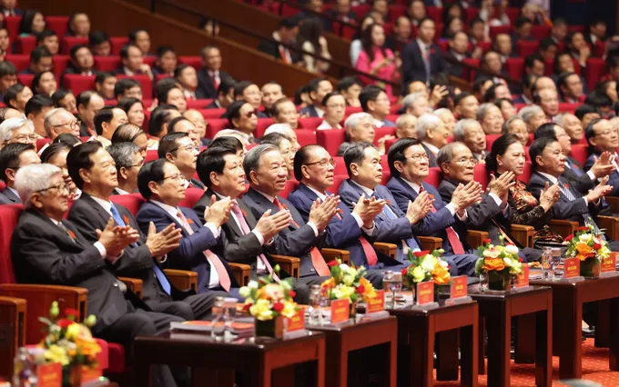 Cùng dự có các đồng chí lãnh đạo chủ chốt, Ủy viên Bộ Chính trị, Ủy viên Ban Bí thư; các đồng chí lãnh đạo, nguyên lãnh đạo Đảng, Nhà nước...