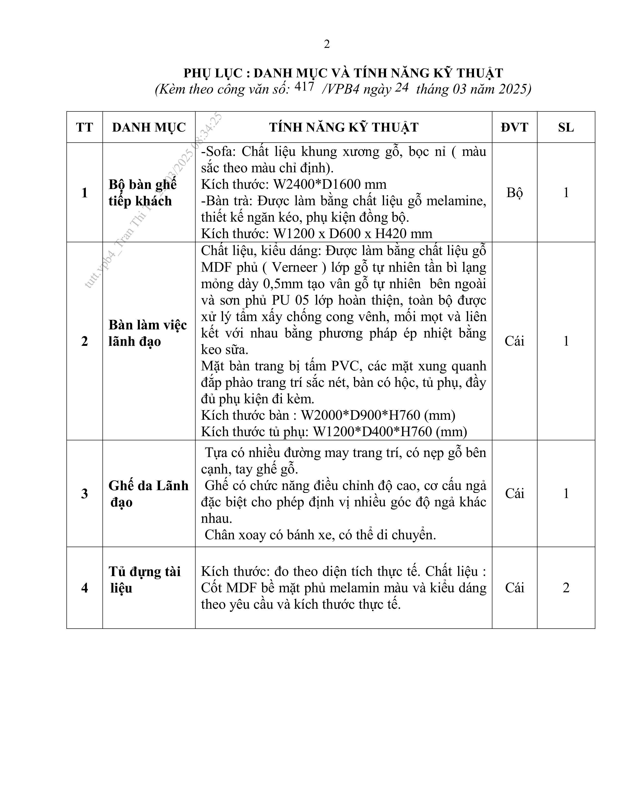 Hiện nay Văn phòng Bộ Y tế có nhu cầu mua sắm trang bị phòng làm việc, cơ sở vật chất cho Đồng chí Phó Bí thư chuyên trách Đảng ủy Bộ Y tế chi tiết như sau: