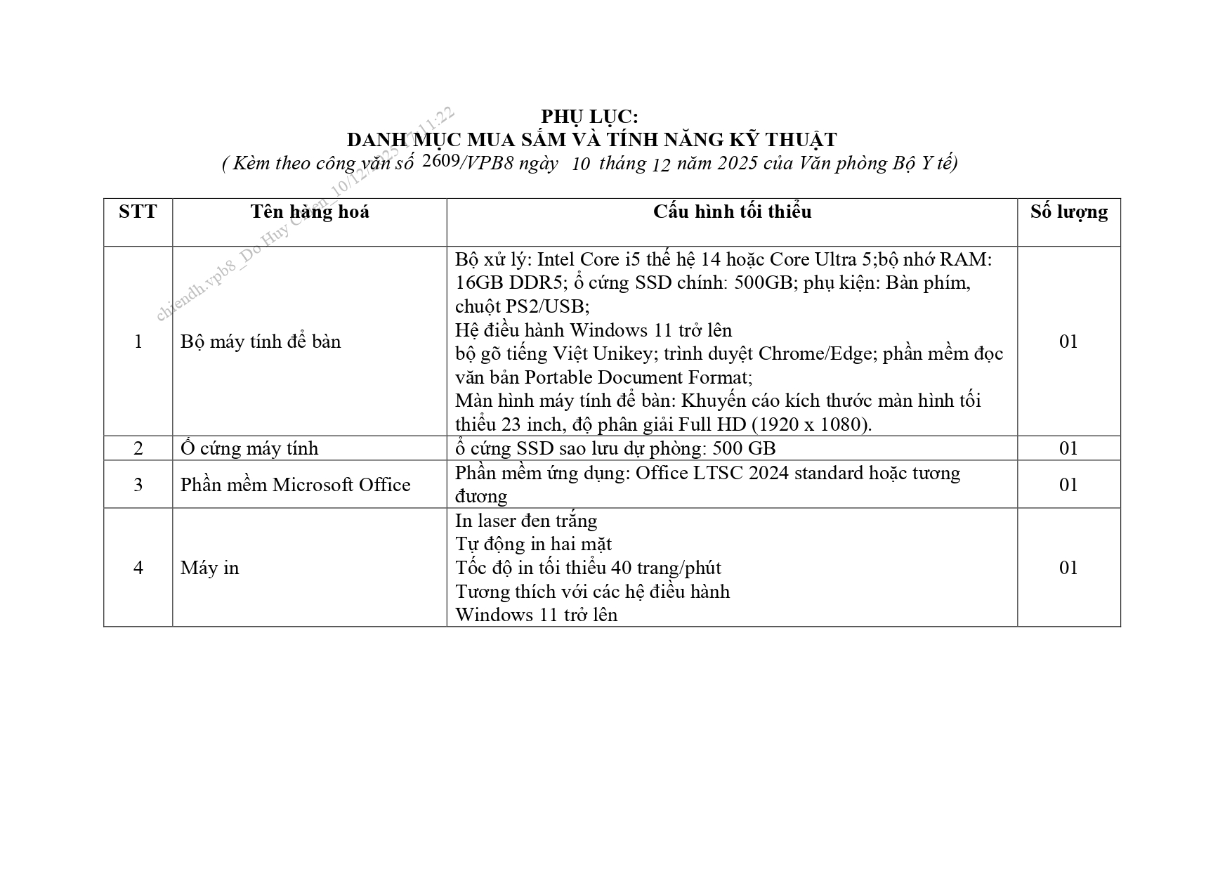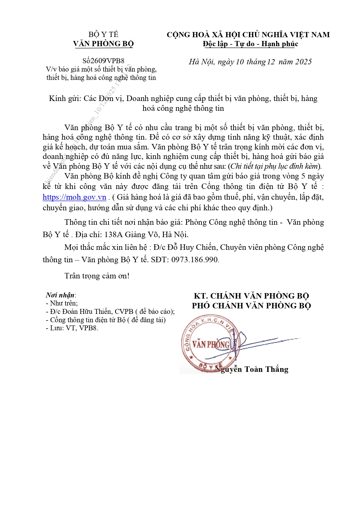 Văn phòng Bộ mời báo giá thiết bị văn phòng, thiết bị hàng hóa công nghệ thông tin
