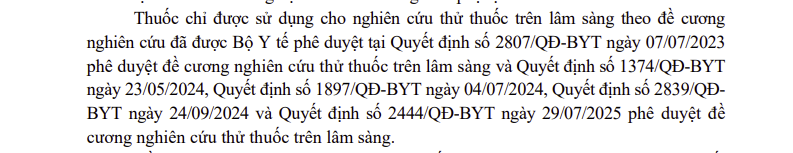 Thông tin thuốc nhập khẩu sử dụng cho thử nghiệm thuốc trên lâm sàng (2589)