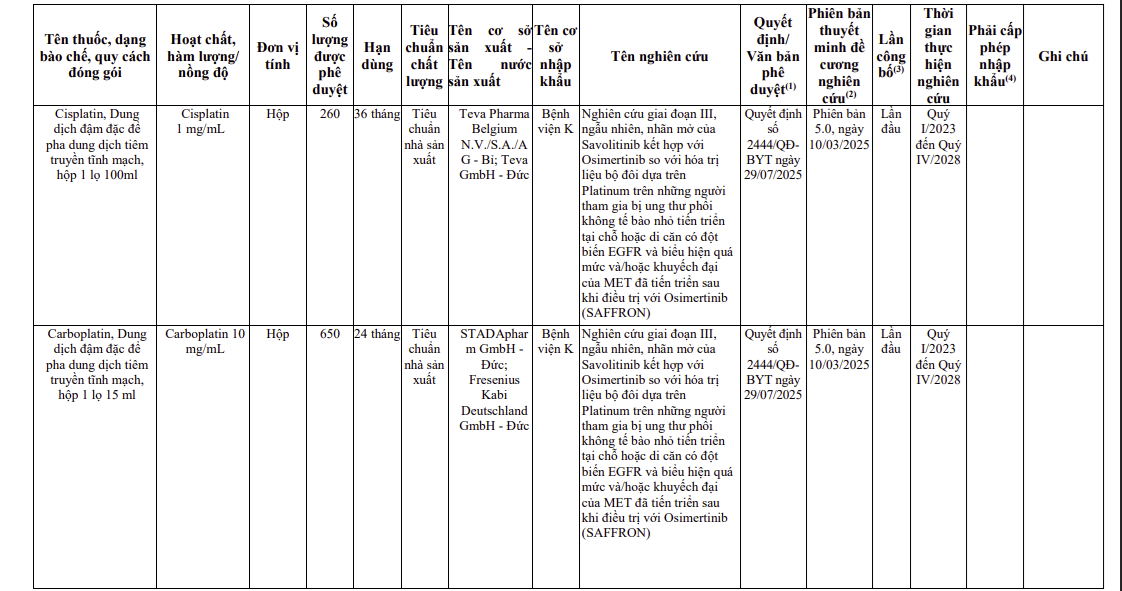 - Thông tin các thuốc nhập khẩu sử dụng cho thử nghiệm thuốc trên lâm sàng (2825)