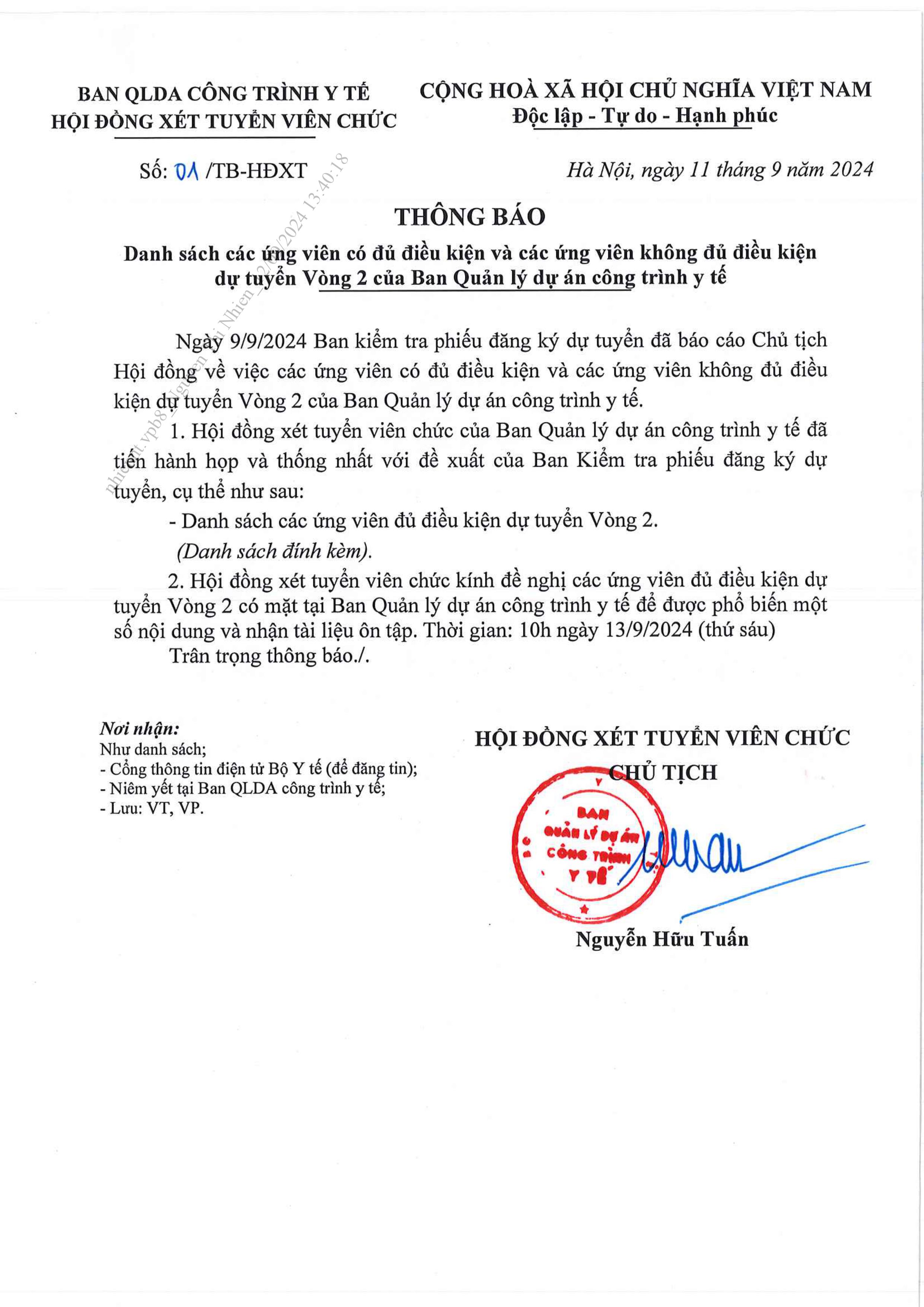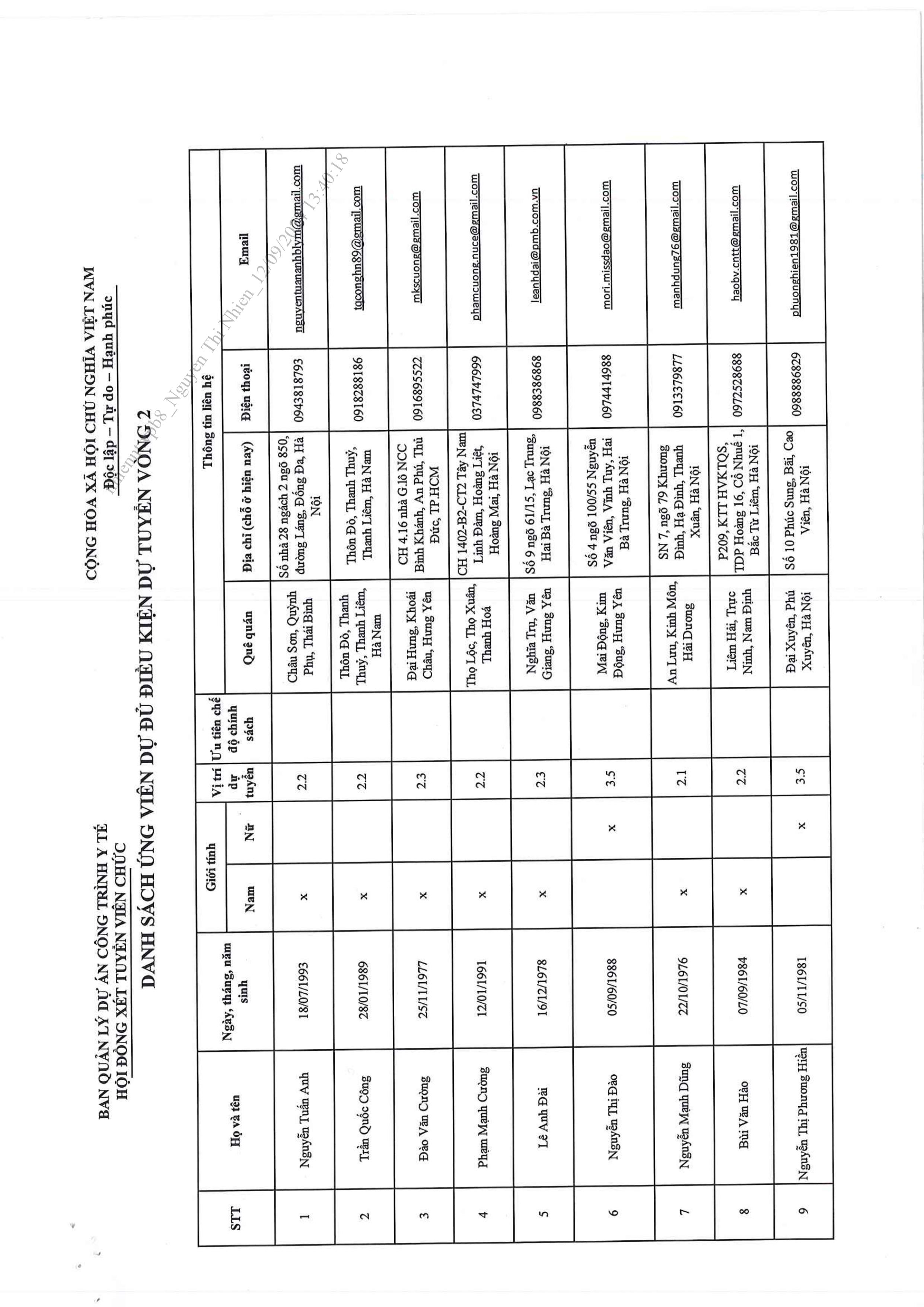 Dánh sách ứng viên dự đủ điều kiện dự tuyển vòng 2 kỳ thi tuyển viên chức của Ban QLDA công trình y tế
