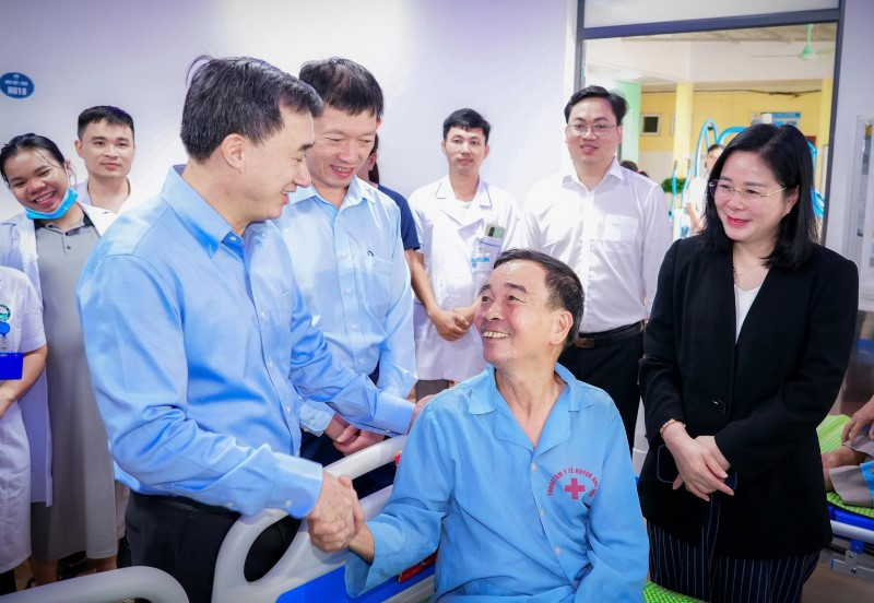 Thứ trưởng Bộ Y tế Trần Văn Thuấn thăm hỏi bệnh nhân đang điều trị tại Trung tâm Y tế Anh Sơn.