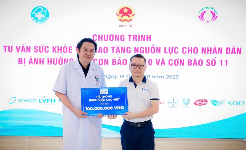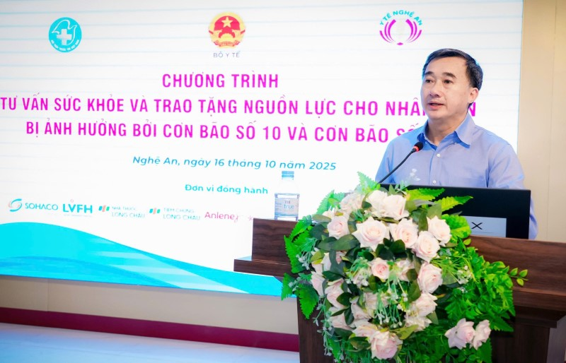 Sáng 16/10/2025, tại Trung tâm Y tế Anh Sơn, tỉnh Nghệ An, Bộ Y tế, Hội Thầy thuốc trẻ Việt Nam phối hợp cùng Sở Y tế Nghệ An, Hội Thầy thuốc trẻ tỉnh Nghệ An tổ chức Chương trình tư vấn sức khoẻ và trao tặng nguồn lực cho nhân dân bị ảnh hưởng bởi cơn bão số 10 và cơn bão số 11.