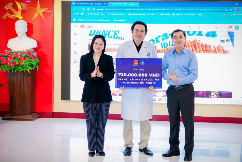 Thứ trưởng Bộ Y tế trao tặng phần quà trị giá 730 triệu đồng gồm tiền mặt, vật tư y tế và quà tặng cho nhân dân tỉnh Nghệ An.