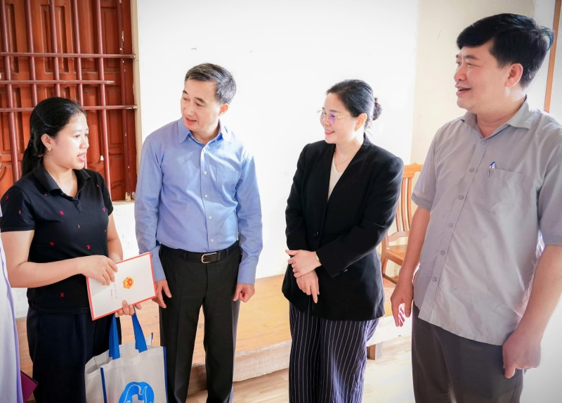 Thứ trưởng Bộ Y tế và Giám đốc Sở Y tế Nghệ An tặng quà cho cán bộ, nhân viên y tế bị thiệt hại tài sản do các cơn bão trong năm 2025.