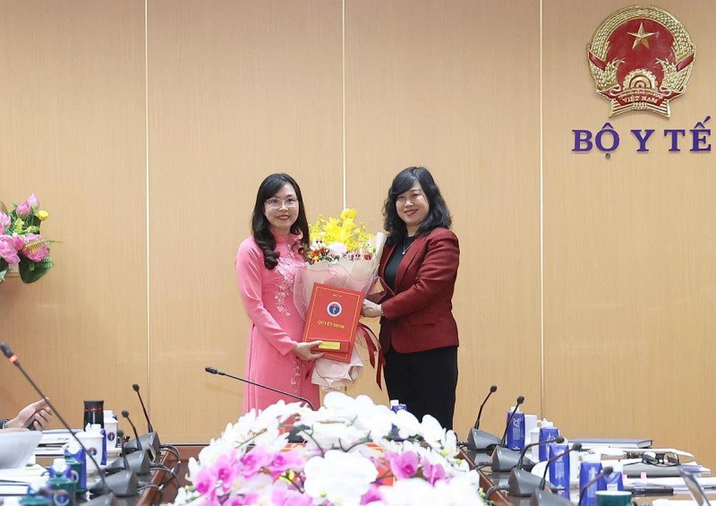 Bộ trưởng Bộ Y tế Đào Hồng Lan trao Quyết định bổ nhiệm lại Phó Cục trưởng Cục Quản lý Khám chữa bệnh cho đồng chí Vương Ánh Dương