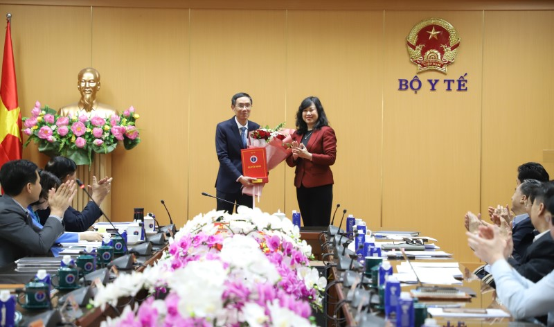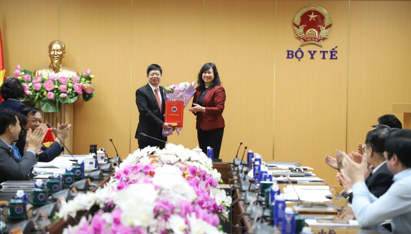Bộ trưởng Bộ Y tế Đào Hồng Lan trao Quyết định bổ nhiệm lại Phó Cục trưởng Cục Quản lý Khám, chữa bệnh cho đồng chí Nguyễn Trọng Khoa