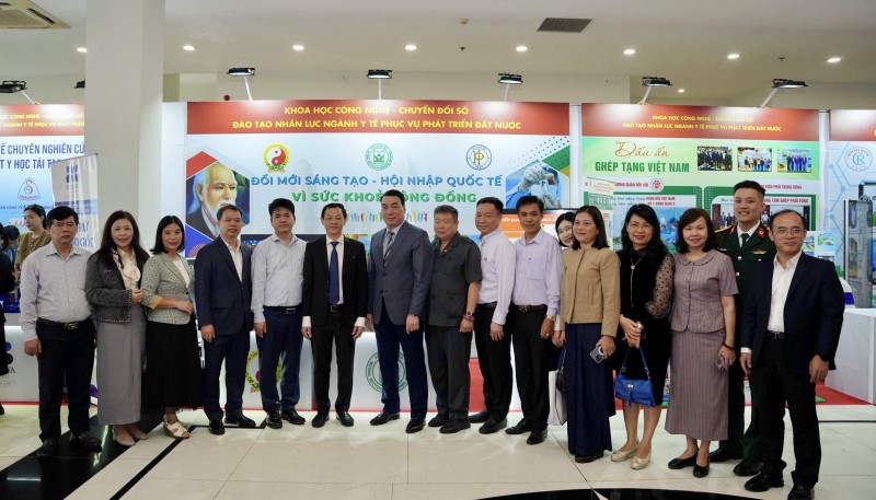 Thứ trưởng Nguyễn Tri Thức, lãnh đạo Cục Khoa học Công nghệ và Đào tạo cùng các đại biểu tham quan các gian triển lãm về khoa học, công nghệ y tế trưng bày tại hội thảo.