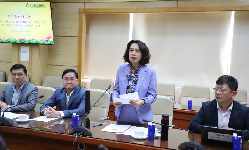 Phát biểu tại lễ tiếp nhận, Thứ trưởng Nguyễn Thị Liên Hương cho biết trong những ngày qua, Bộ Y tế đã triển khai các hoạt động hỗ trợ các địa phương khu vực miền Trung và Tây Nguyên khắc phục hậu quả mưa bão. Cùng đó, các đoàn công tác chủ lực của hệ thống y tế dự phòng, khám chữa bệnh trong các đơn vị trực thuộc Bộ Y tế đã triển khai nhiều hoạt động đồng hành, hỗ trợ các địa phương khu vực miền Trung và Tây Nguyên. “Nhu cầu về hóa chất xử lý môi trường, kiểm soát dịch bệnh sau mưa lũ là vô cùng cấp thiết và cần có thêm nguồn lực hỗ trợ các địa phương khắc phục hậu quả mưa bão. Bộ Y tế trân trọng cảm ơn sự hỗ trợ kịp thời, trách nhiệm và đầy ý nghĩa của Tập đoàn Hoá chất Việt Nam trong bối cảnh nhiều địa phương đang chịu thiệt hại nặng nề do thiên tai”, Thứ trưởng Nguyễn Thị Liên Hương nói.