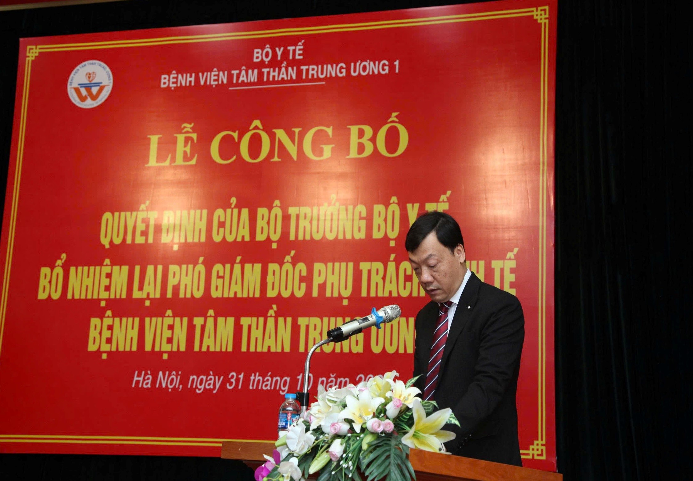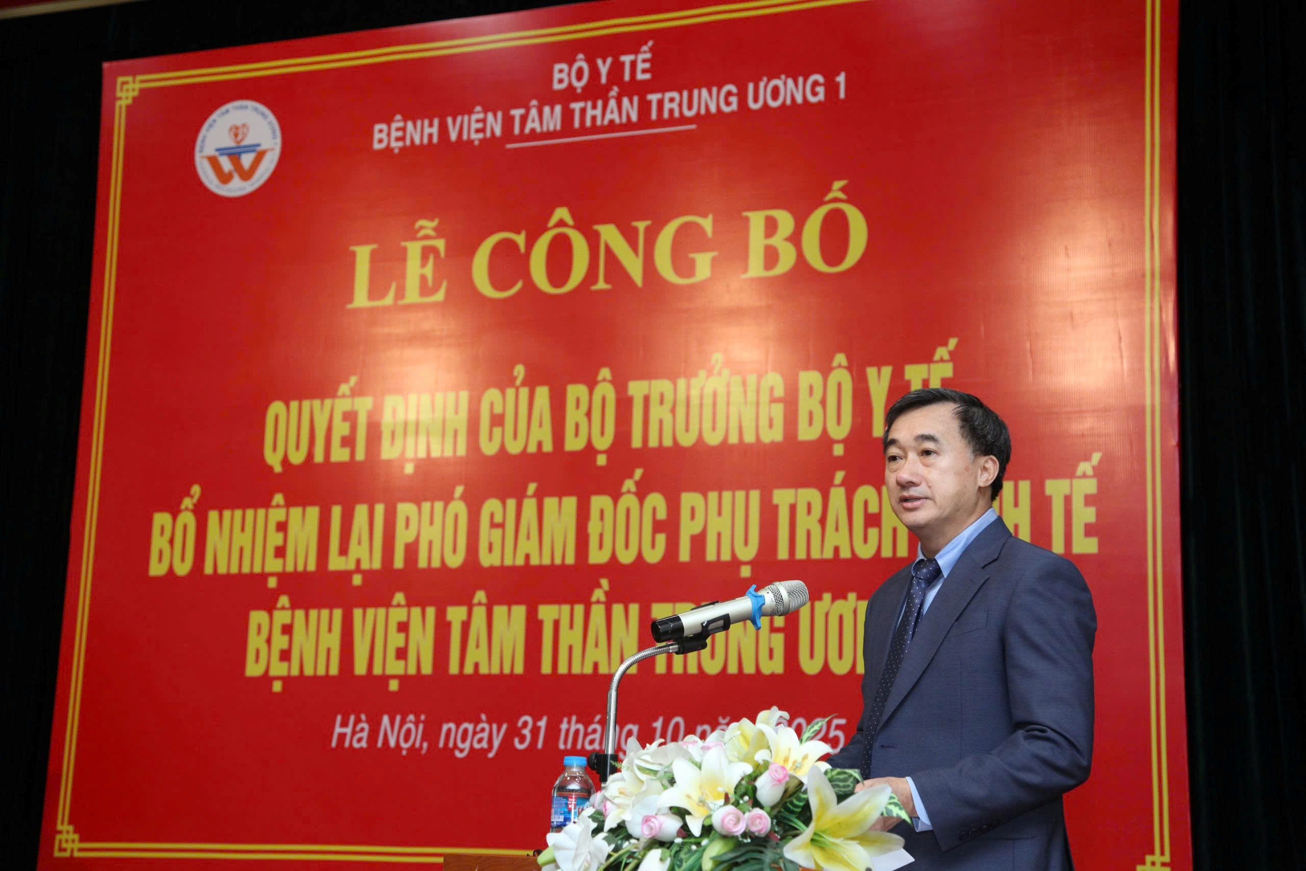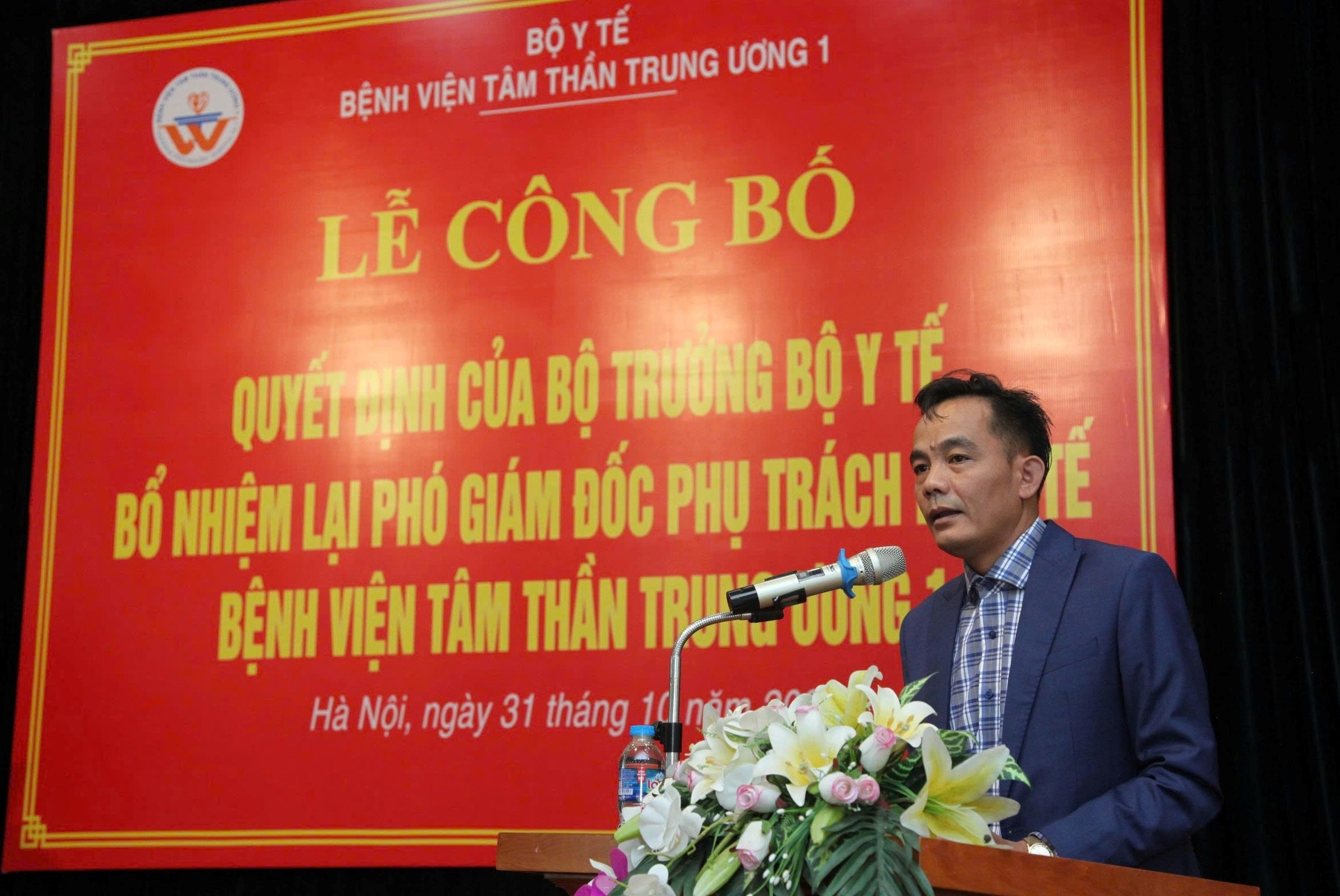 Thay mặt Tập thể lãnh đạo Bệnh viện, TS.BS Nguyễn Mạnh Phát, Giám đốc Bệnh viện trân trọng cảm ơn Đảng ủy Bộ Y tế, Lãnh đạo Bộ Y tế đã luôn quan tâm đến các hoạt động của Bệnh viện, đặc biệt trong giai đoạn vừa qua; cảm ơn toàn thể viên chức và người lao động của Bệnh viện đã đồng sức, đồng lòng, đoàn kết, trách nhiệm thực hiện nhiệm vụ để Bệnh viện Tâm thần Trung ương 1 ngày càng phát triển.