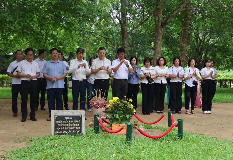 Đoàn cũng đến dâng hương, tưởng nhớ và tri ân tại Cụm di tích Lán Nà Nưa, nơi in đậm bóng dáng của Chủ tịch Hồ Chí Minh, vị lãnh tụ thiên tài, người Cha già kính yêu của cả dân tộc. Đình Tân Trào là nơi vào sáng 17/8/1945, thay mặt Ủy ban Dân tộc giải phóng Việt Nam, Chủ tịch Hồ Chí Minh đã đọc lời tuyên thệ trong lễ ra mắt Quốc dân.