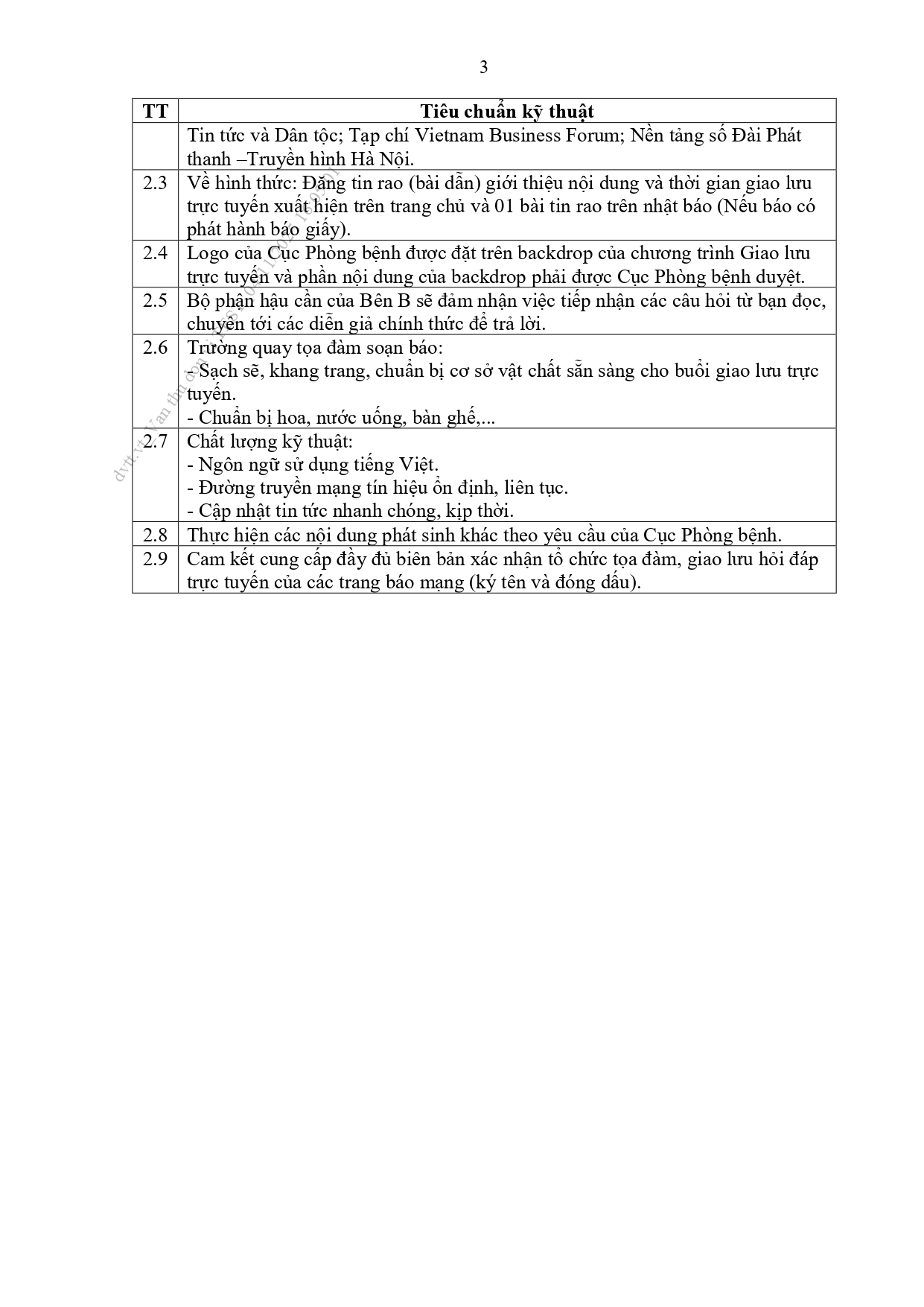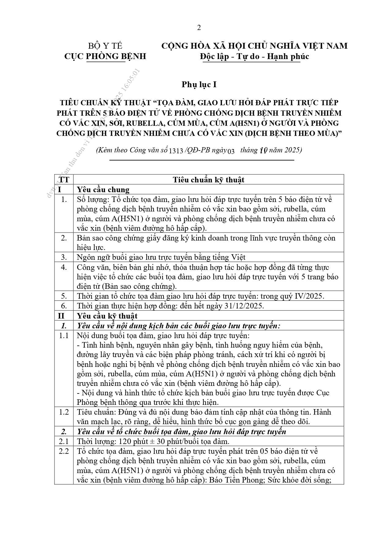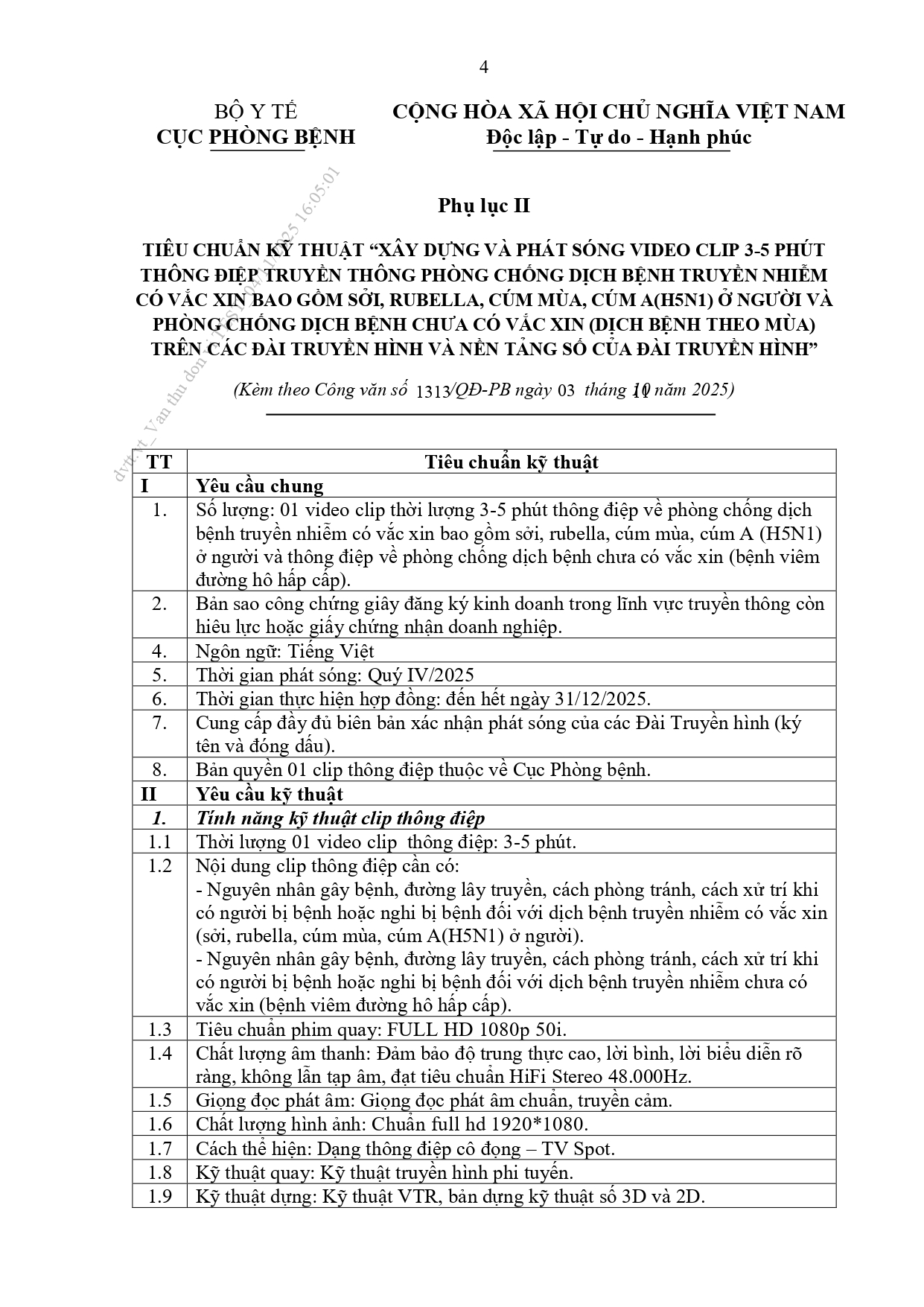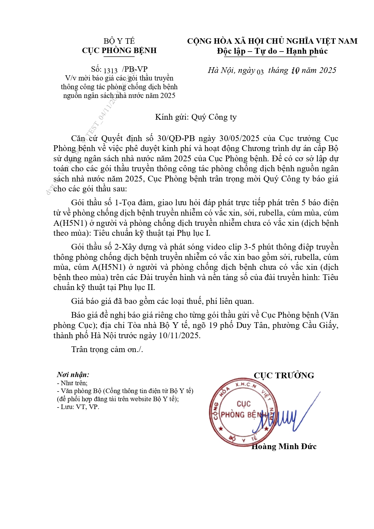 Cục Phòng bệnh mời báo giá các gói thầu truyền thông công tác phòng chống dịch bệnh nguồn ngân sách nhà nước năm 2025