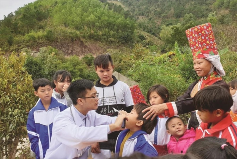 Đoàn Thanh niên Bệnh viện Sản nhi tỉnh Quảng Ninh khám, chữa bệnh cho trẻ em dân tộc thiểu số miền núi. Ảnh: DTPT.