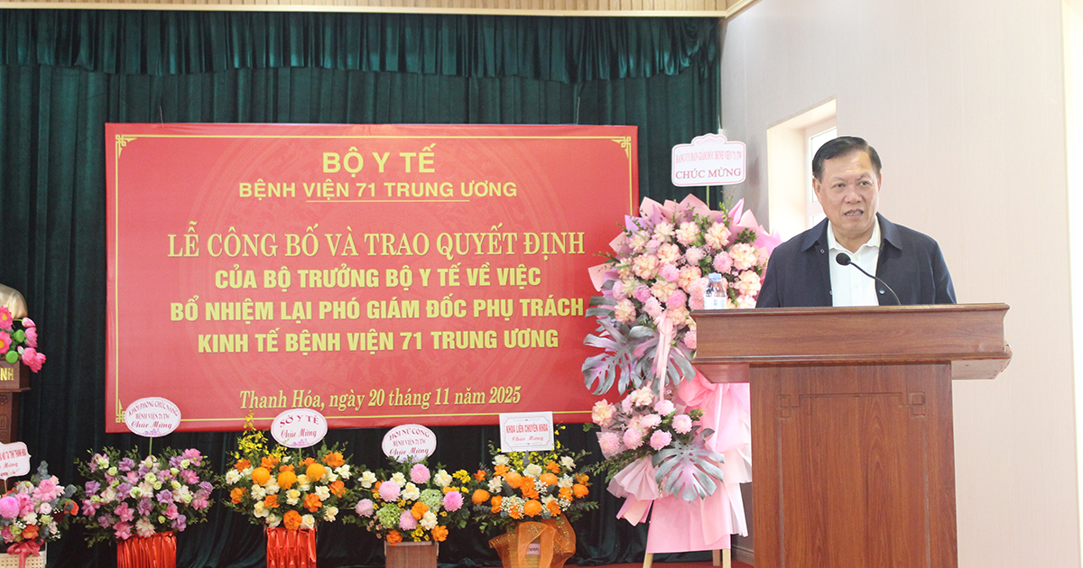 Tại buổi lễ, Thứ trưởng Đỗ Xuân Tuyên đã trao Quyết định số 3418/QĐ-BYT ngày 20/11/2025 của Bộ trưởng Bộ Y tế về việc bổ nhiệm lại đồng chí Lê Ngọc Trường, BSCKII Bệnh viện 71 Trung ương, giữ chức vụ Phó Giám đốc phụ trách Kinh tế Bệnh viện 71 Trung ương. Thời hạn giữ chức vụ là 05 năm, kể từ ngày Quyết định có hiệu lực. Quyết định có hiệu lực từ ngày ký ban hành.