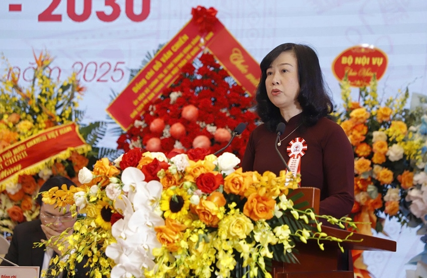 Bộ trưởng Bộ Y tế Đào Hồng Lan phát biểu tại đại hội. Ảnh MTTQ