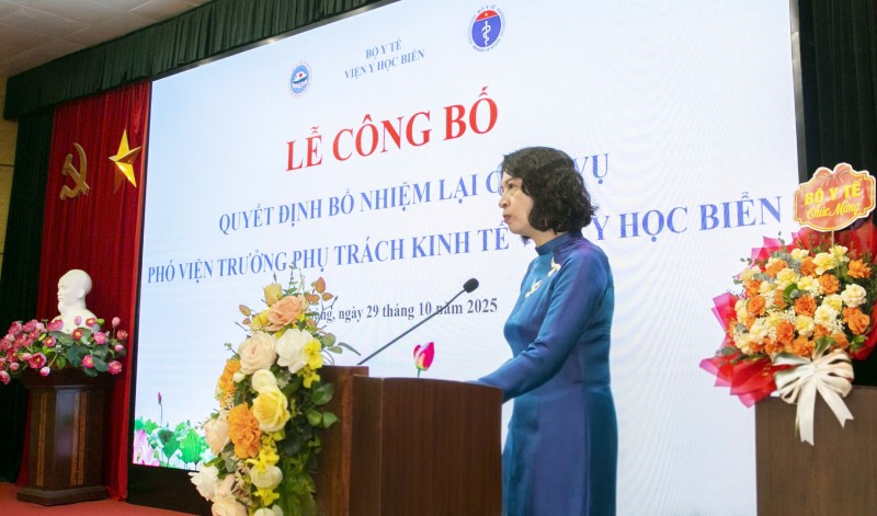 Sáng 29/10/2025, tại Viện Y học biển, Bộ Y tế tổ chức lễ công bố Quyết định về công tác cán bộ. PGS.TS Nguyễn Thị Liên Hương, Thứ trưởng Bộ Y tế dự, trao Quyết định và phát biểu tại buổi lễ.