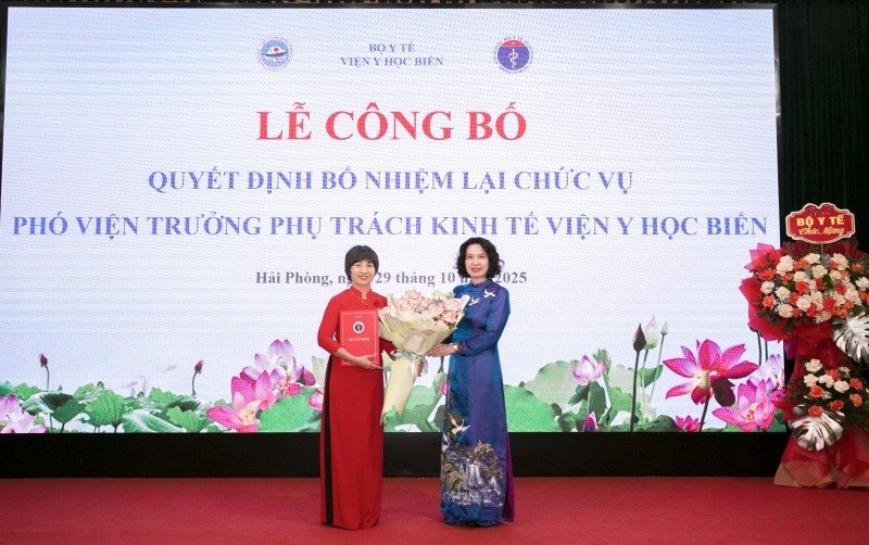 Thứ trưởng Bộ Y tế Nguyễn Thị Liên Hương trao Quyết định bổ nhiệm lại cán bộ Viện Y học biển