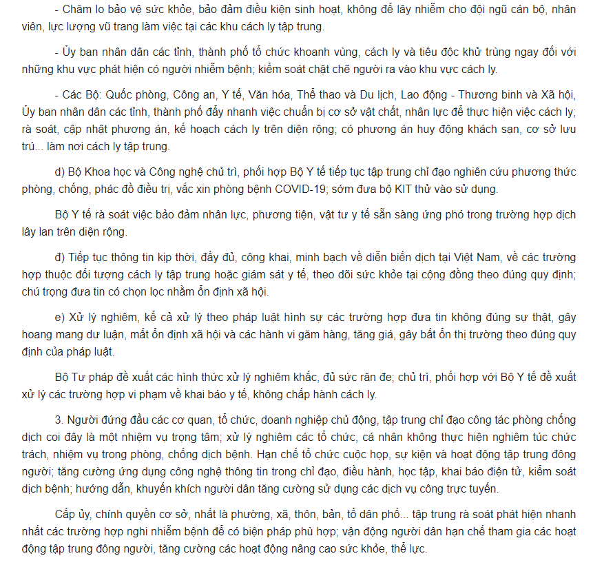 - Chỉ thị số 15/CT-TTg của Thủ tướng Chính phủ : Về quyết liệt thực hiện đợt cao điểm phòng, chống dịch COVID-19