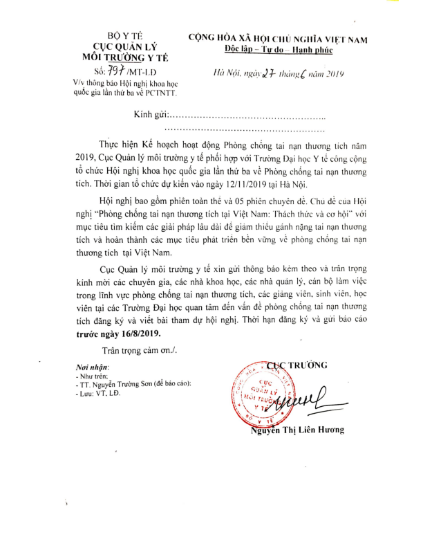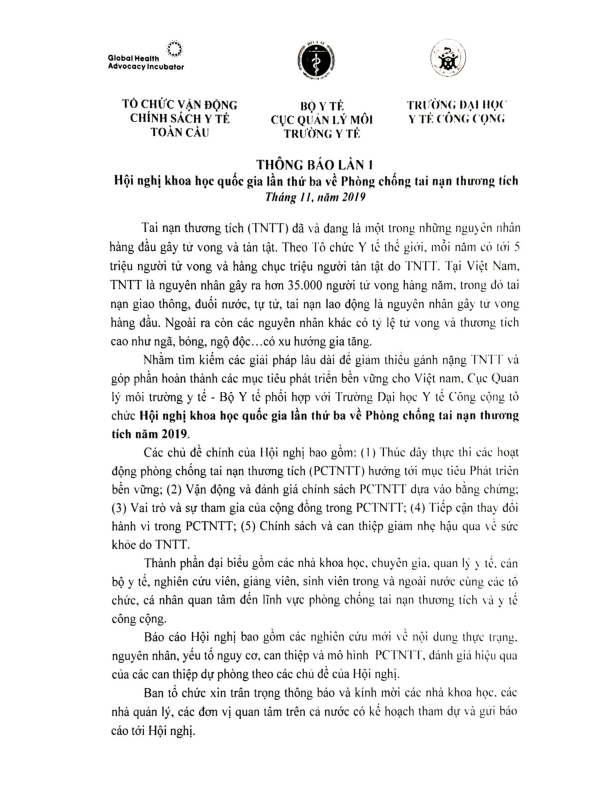 - Thông báo lần 2: Hội nghị khoa học quốc gia lần thứ 3 về Phòng chống tai nạn thương tích